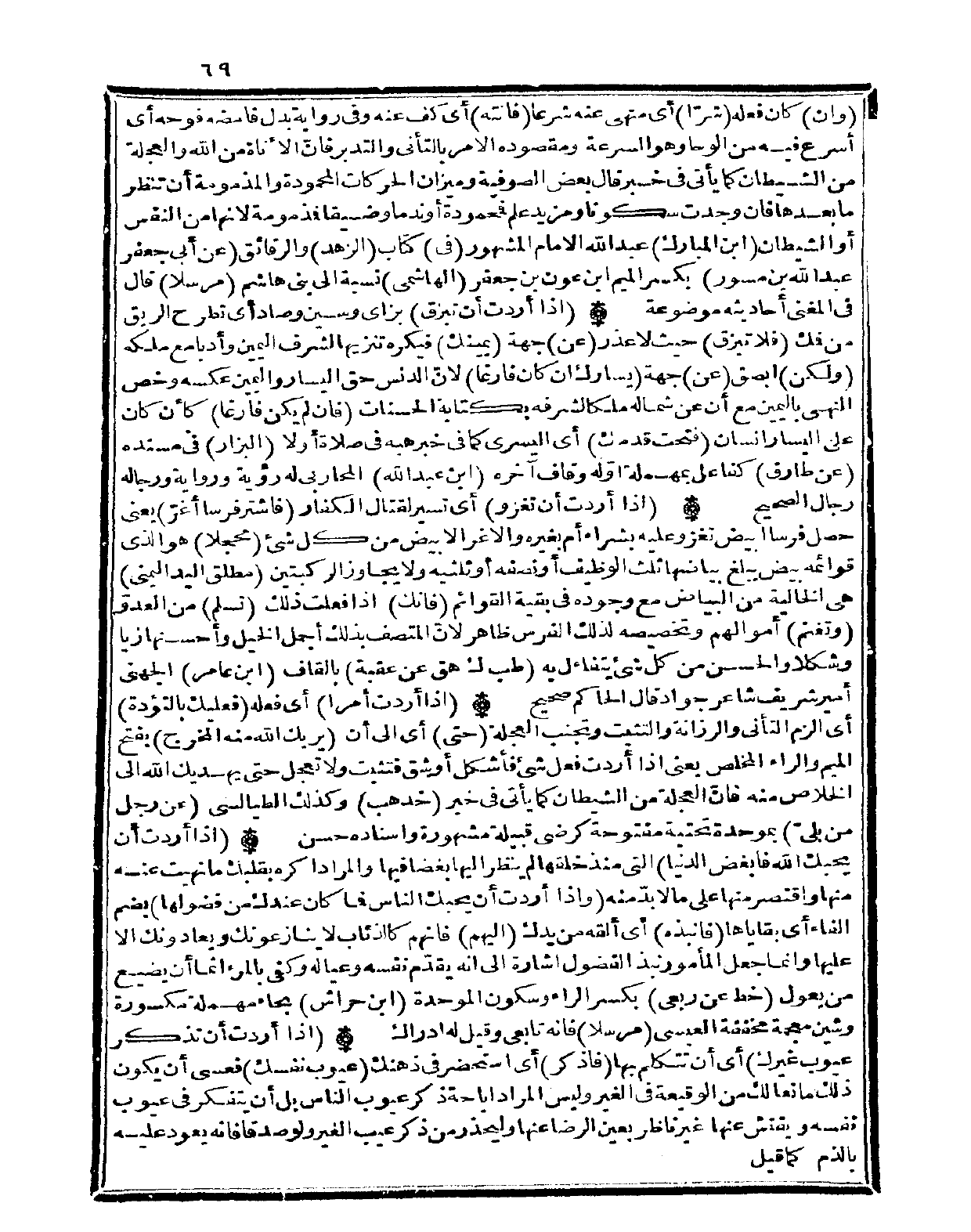 (إِذا أردْت أمرا) أَي فعله (فَعَلَيْك بالتؤدة) أَي الزم التأني والرزانة والتثبت وتجنب العجلة (حَتَّى) أَي إِلَى أَن (يُرِيك الله مِنْهُ الْمخْرج) بِفَتْح الْمِيم وَالرَّاء المخلص يَعْنِي إِذا أردْت فعل شَيْء فأشكل أَو شقّ فَتثبت وَلَا تعجل حَتَّى يهديك الله إِلَى الْخَلَاص مِنْهُ فإنّ العجلة من الشَّيْطَان كَمَا يَأْتِي فِي خبر (خد هَب) وَكَذَلِكَ الطَّيَالِسِيّ (عَن رجل من بلىّ) بموحدة تحتية مَفْتُوحَة كرضى قَبيلَة مَشْهُورَة وَإِسْنَاده حسن