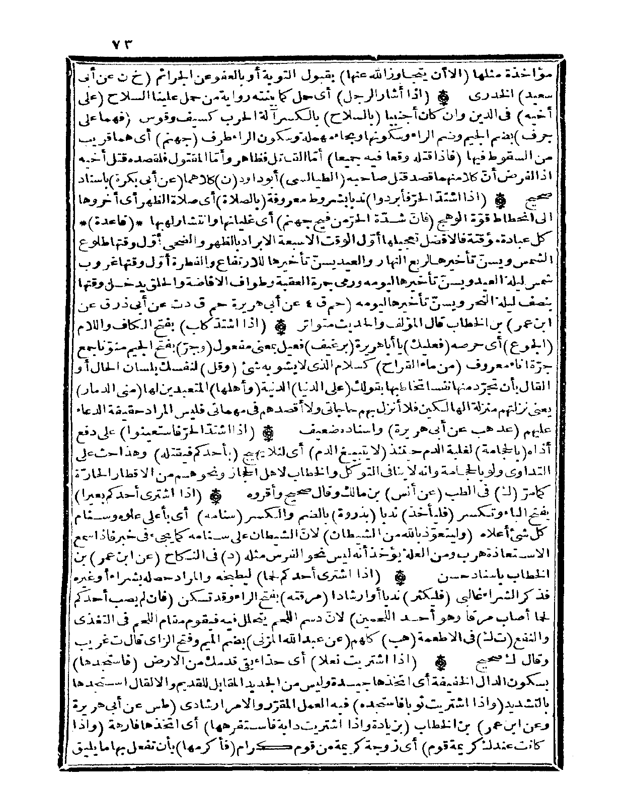 (إِذا أَشَارَ الرجل) أَي حمل كَمَا بَينته رِوَايَة من حمل علينا السِّلَاح (على أَخِيه) فِي الدّين وَإِن كَانَ أَجْنَبِيّا (بِالسِّلَاحِ) بِالْكَسْرِ آلَة الْحَرْب كسيف وقوس (فهما على (جرف) بِضَم الْجِيم وَضم الرَّاء وسكونها وبحاء مُهْملَة وَسُكُون الرَّاء طرف (جَهَنَّم) أَي هما قريب من السُّقُوط فِيهَا (فَإِذا قَتله وَقعا فِيهِ جَمِيعًا) أمّا الْقَاتِل فَظَاهر وأمّا الْمَقْتُول فلقصده قتل أَخِيه إِذا الْفَرْض أنّ كلا مِنْهُمَا قصد قتل صَاحبه (الطَّيَالِسِيّ) أَبُو دَاوُد (ن) كِلَاهُمَا (عَن أبي بكرَة) بِإِسْنَاد صَحِيح