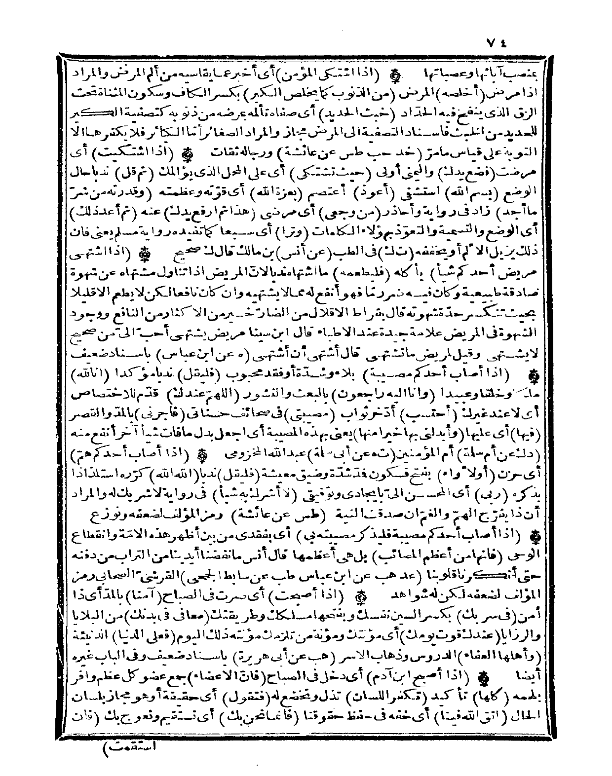 (إِذا اشتكيت) أَي مَرضت (فضع يدك) واليمنى أولى (حَيْثُ تَشْتَكِي) أَي على الْمحل الَّذِي يؤالمك (ثمَّ قل) ندبا حَال الْوَضع (بِسم الله) استشفى (أعوذ) أَعْتَصِم (بعزة الله) أَي قوّته وعظمته (وَقدرته من شرّ مَا أجد) زَاد فِي رِوَايَة وأحاذر (من وجعي) أَي مرضِي (هَذَا ثمَّ ارْفَعْ يدك) عَنهُ (ثمَّ أعد ذَلِك) أَي الْوَضع وَالتَّسْمِيَة والتعوّذ بهؤلاء الْكَلِمَات (وترا) أَي سبعا كَمَا تفيده رِوَايَة مُسلم يَعْنِي فَإِن ذَلِك يزِيل الْأَلَم أَو يخففه (ت ك) فِي الطِّبّ (عَن أنس) بن مَالك قَالَ ك صَحِيح