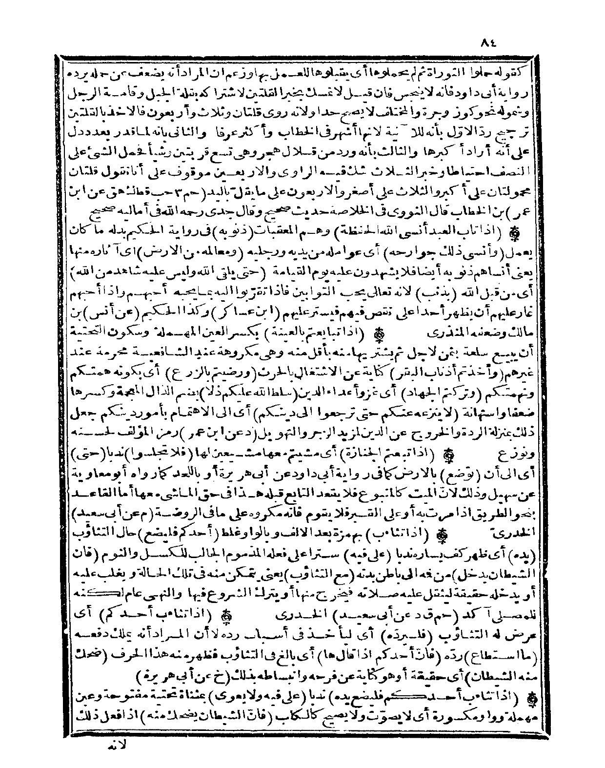 كَقَوْلِه حملُوا التَّوْرَاة ثمَّ لم يحملوها أَي يقبلوها للْعَمَل بهَا وَزعم أَن المُرَاد أَنه يضعف عَن حمله يردهُ رِوَايَة أبي دَاوُد فَإِنَّهُ لَا ينجس فَإِن قيل لَا تمسك بِخَبَر الْقلَّتَيْنِ لاشتراكه بقلة الْجَبَل وقامة الرجل وشموله نَحْو كوز وجرة والمختلف لَا يَصح حدا وَلِأَنَّهُ روى قلتان وَثَلَاث وَأَرْبَعُونَ فالأخذ بالقلتين تَرْجِيح ردّ الأوّل بِأَنَّهُ للآنية لِأَنَّهَا أشهر فِي الْخطاب وَأكْثر عرفا وَالثَّانِي بِأَنَّهُ لما قدر بِعَدَد دلّ على أَنه أَرَادَ أكبرها وَالثَّالِث بِأَنَّهُ ورد من قلال هجر وَهِي تسع قربتين وشيئا فَحمل الشَّيْء على النّصْف احْتِيَاطًا وَخبر الثَّلَاث شكّ فِيهِ الرَّاوِي وَالْأَرْبَعِينَ مَوْقُوف على أَنا نقُول قلتان محمولتان على أكبر وَالثَّلَاث على أَصْغَر وَالْأَرْبَعُونَ على مَا يقلّ بِالْيَدِ (حم 3 حب قطّ ك هق عَن ابْن عمر) بن الْخطاب قَالَ النَّوَوِيّ فِي الْخُلَاصَة حَدِيث صَحِيح وَقَالَ جدي رَحمَه الله فِي أَمَالِيهِ صَحِيح