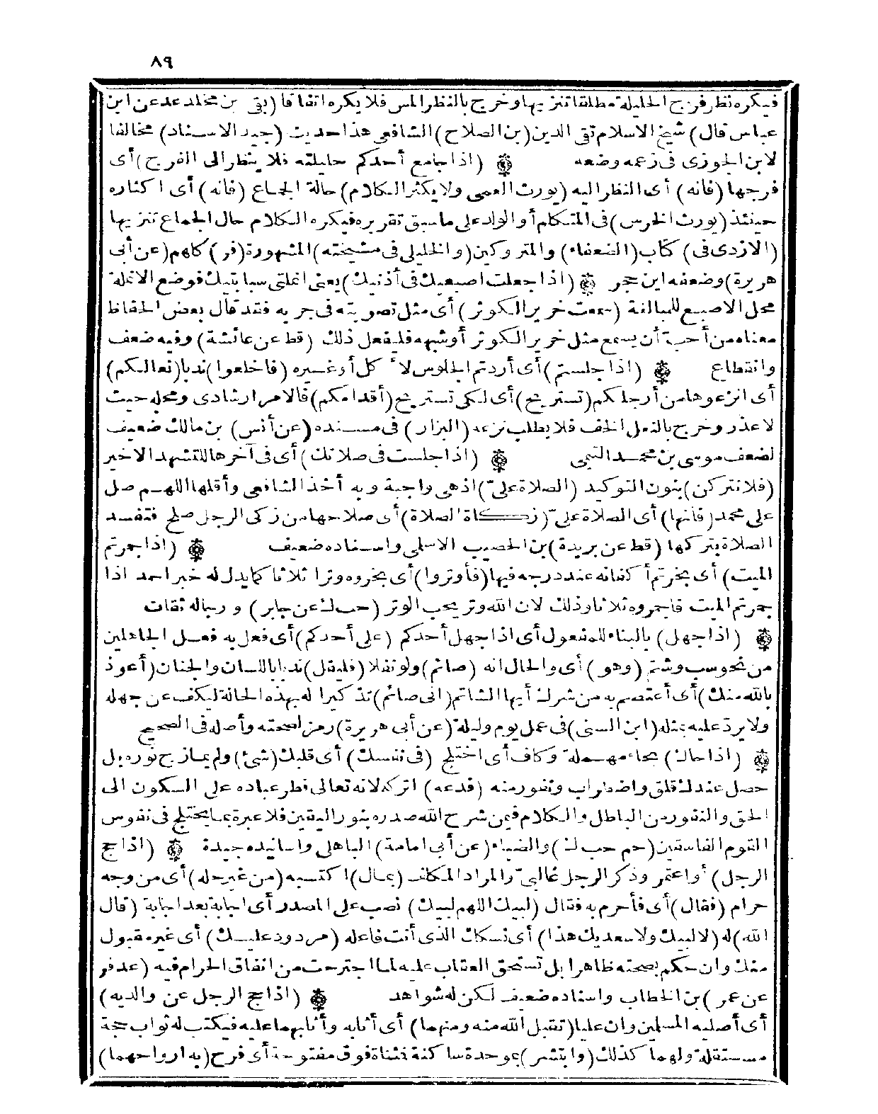 فَيكْرَه نظر فرج الحليلة مُطلقًا تَنْزِيها وَخرج بِالنّظرِ الْمس فَلَا يكره اتِّفَاقًا (بقى بن مخلد عد عَن ابْن عَبَّاس قَالَ) شيخ الْإِسْلَام تَقِيّ الدّين (بن الصّلاح) الشَّافِعِي هَذَا حَدِيث (جيد الْإِسْنَاد) مُخَالفا لِابْنِ الْجَوْزِيّ فِي زَعمه وَضعه