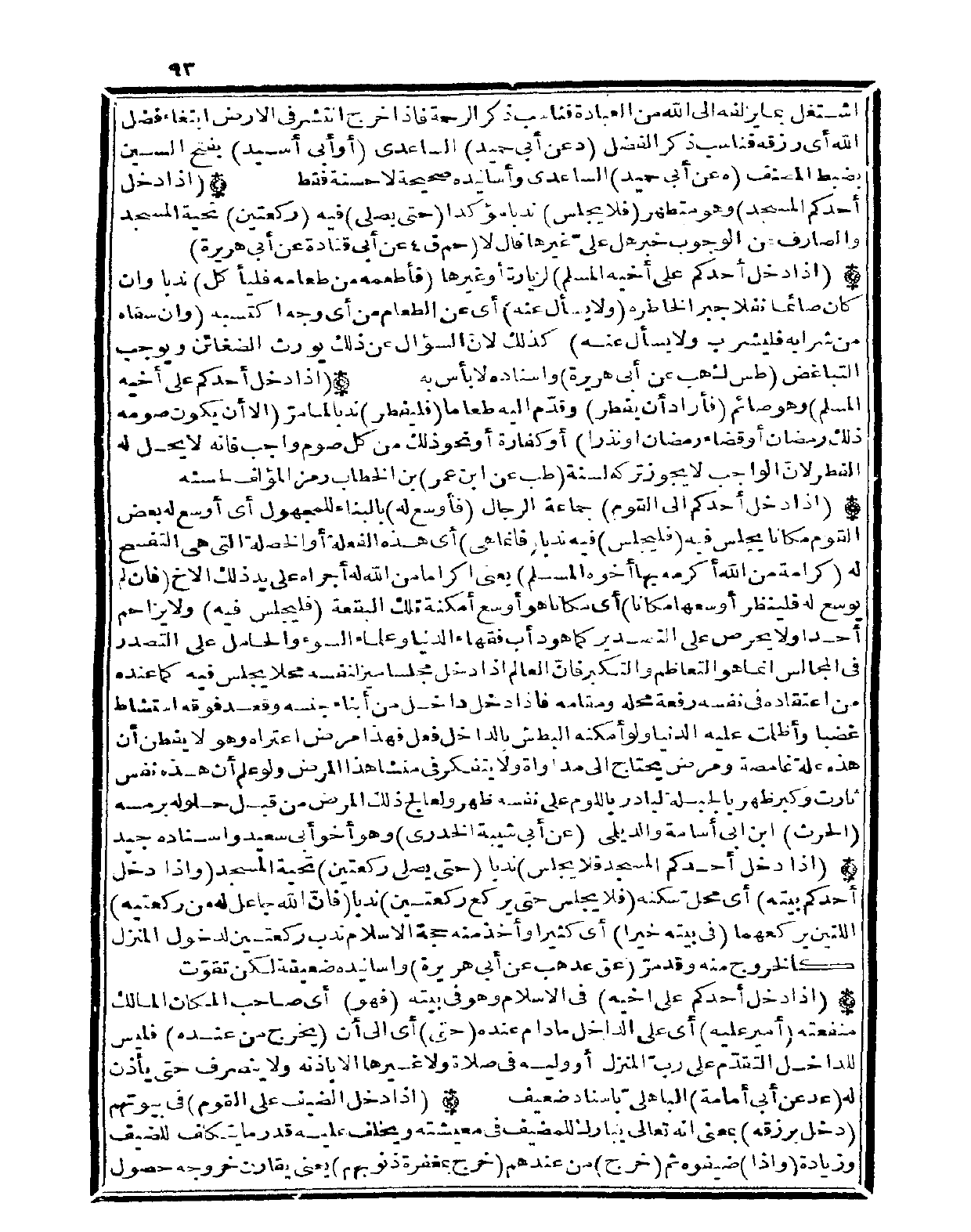 (إِذا دخل أحدكُم الْمَسْجِد) وَهُوَ متطهر (فَلَا يجلس) ندبا مؤكدا (حَتَّى يُصَلِّي) فِيهِ (رَكْعَتَيْنِ) تَحِيَّة الْمَسْجِد والصارف عَن الْوُجُوب خبر هَل عليّ غَيرهَا قَالَ لَا (حم ق 4 عَن أبي قَتَادَة عَن أبي هُرَيْرَة)