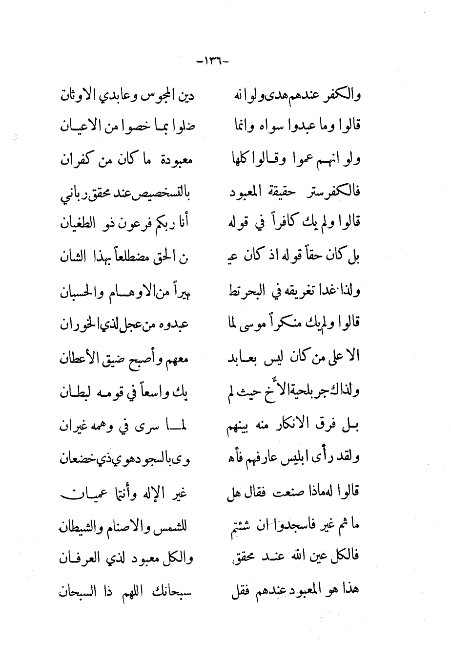 دين الْمَجُوس وعابدي الْأَوْثَان ... قَالُوا وَمَا عبدُوا سواهُ وَإِنَّمَا