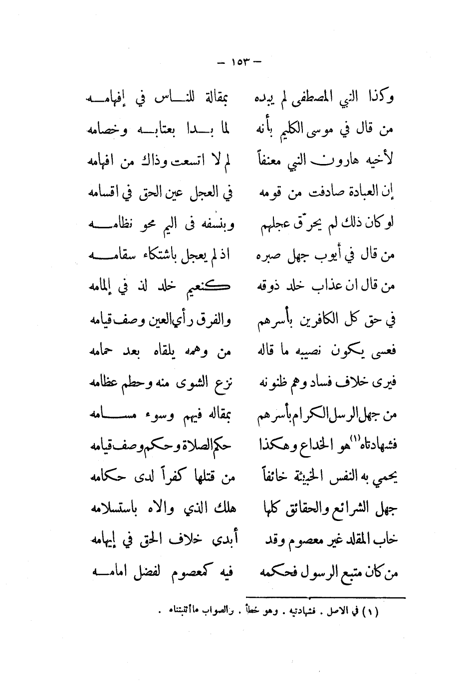 لِأَخِيهِ هَارُون النَّبِي معنفا ... لم لَا اتسعت وَذَاكَ من افهامه