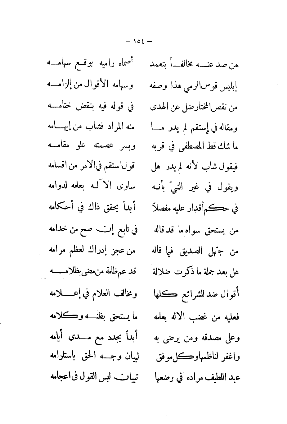 لبَيَان وَجه الْحق باستلزامه ... عبد اللَّطِيف مُرَاده فِي وَضعهَا ... تبيان لبس القَوْل فِي إعجامه ...
