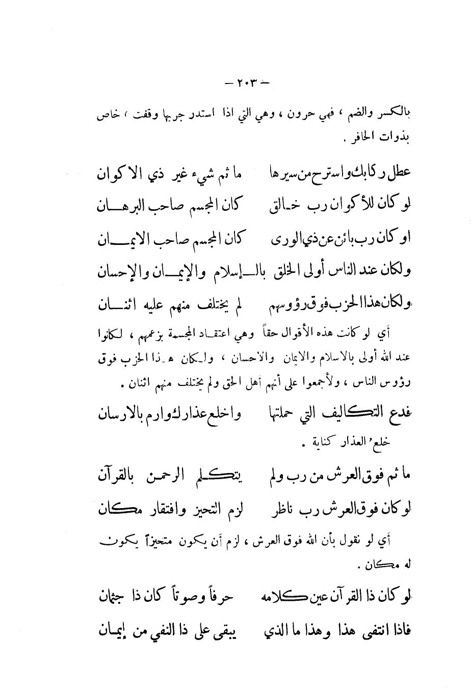 ... مَا ثمَّ فَوق الْعَرْش من رب وَلم ... يتَكَلَّم الرَّحْمَن بِالْقُرْآنِ