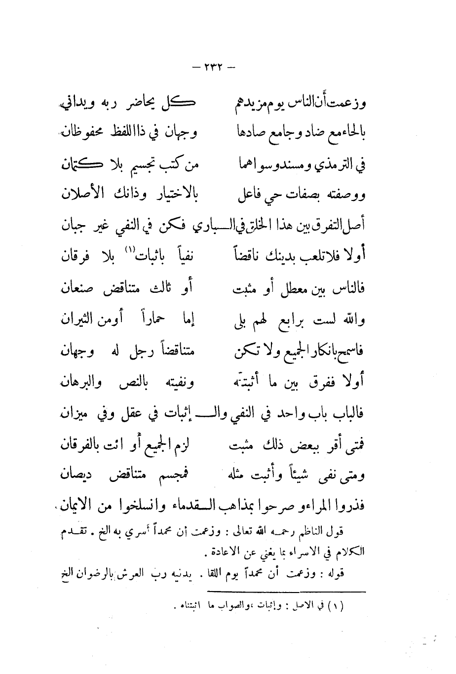 أَولا فَفرق بَين مَا أثبتته ... ونفيته بِالنَّصِّ والبرهان