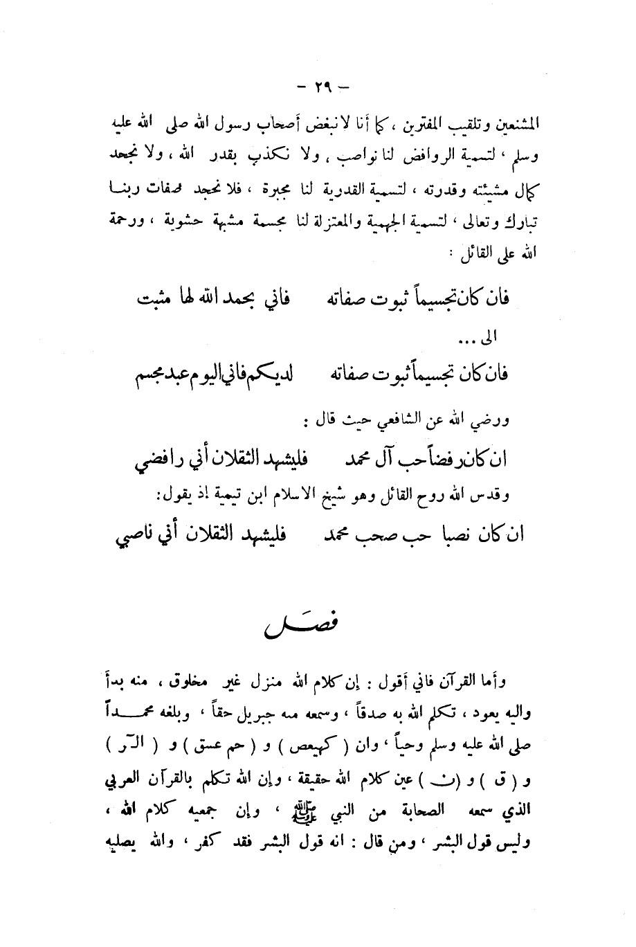 وَقدس الله روح الْقَائِل وَهُوَ شيخ الاسلام ابْن تَيْمِية اذ يَقُول ...