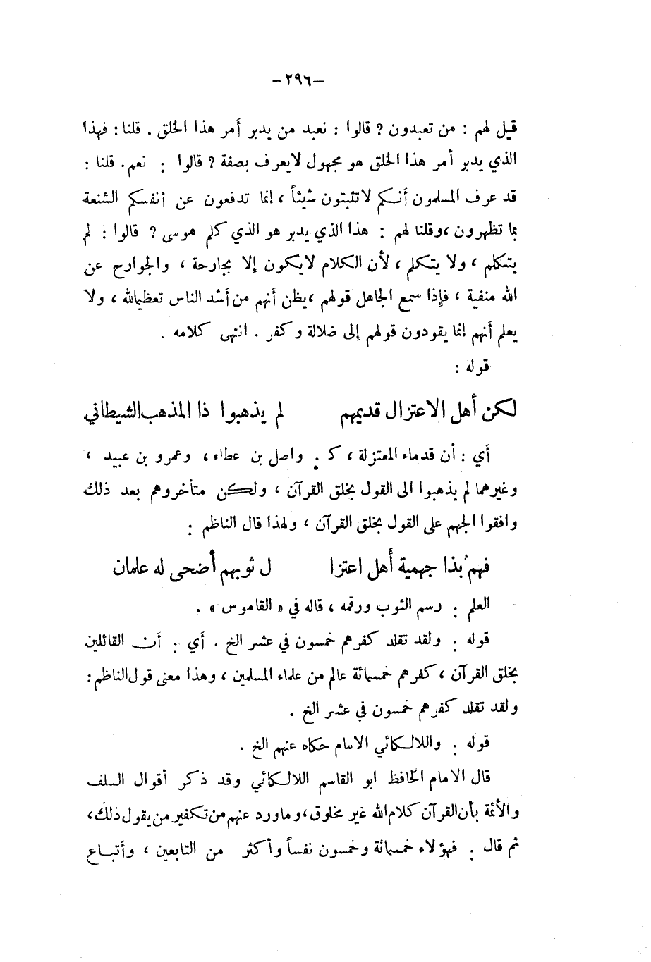 ... لَكِن اهل الاعتزال قديمهم ... لم يذهبوا ذَا الْمَذْهَب الشيطاني ...