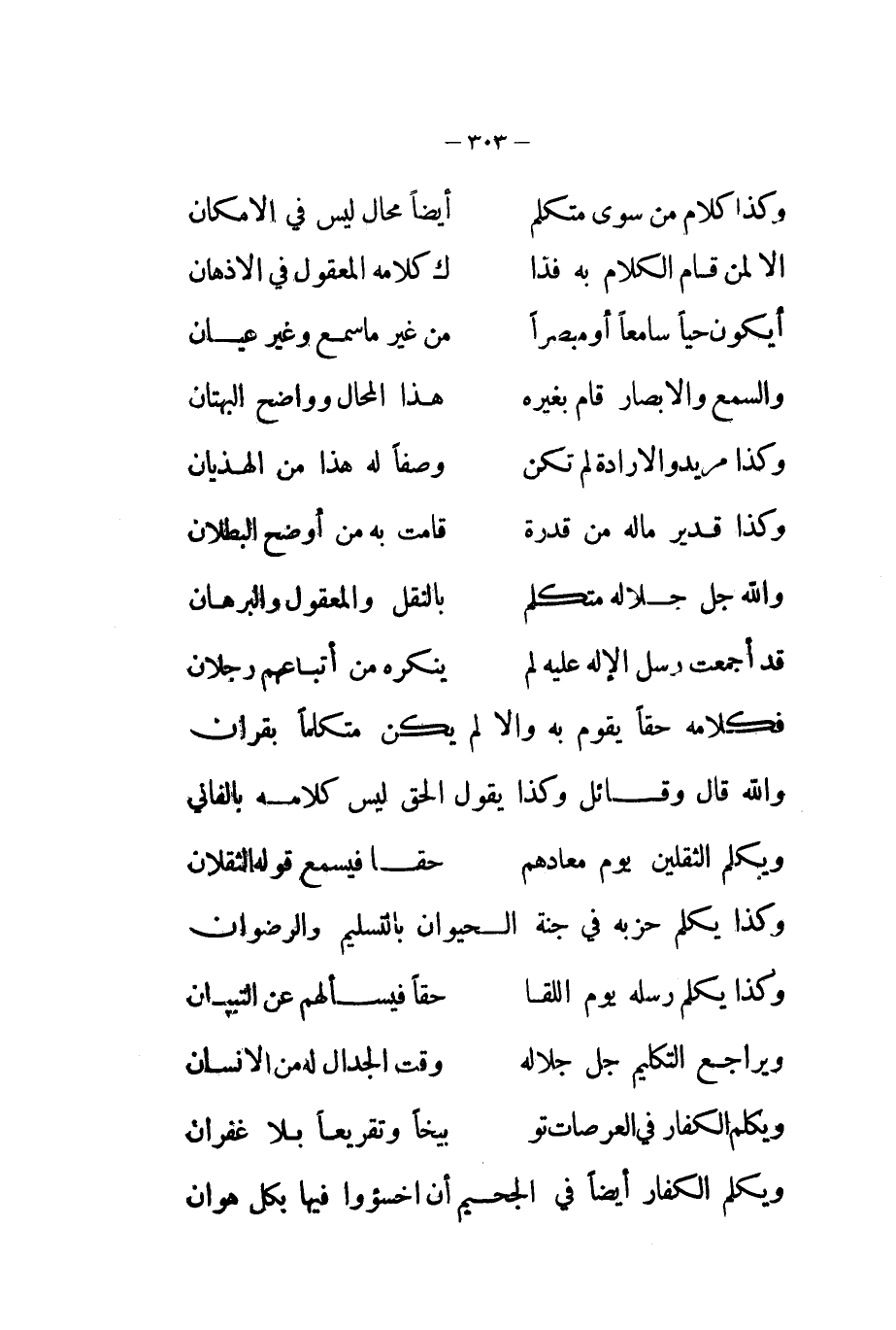 .. وَكَذَا كَلَام من سوى مُتَكَلم ... أَيْضا محَال لَيْسَ فِي الامكان