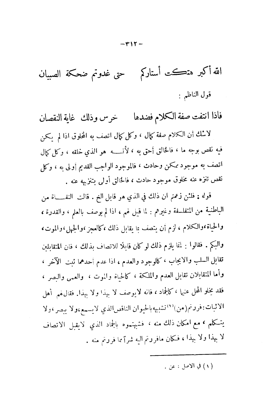 ... فاذا انْتَفَت صفة الْكَلَام فضدها ... خرس وَذَلِكَ غَايَة النُّقْصَان ...