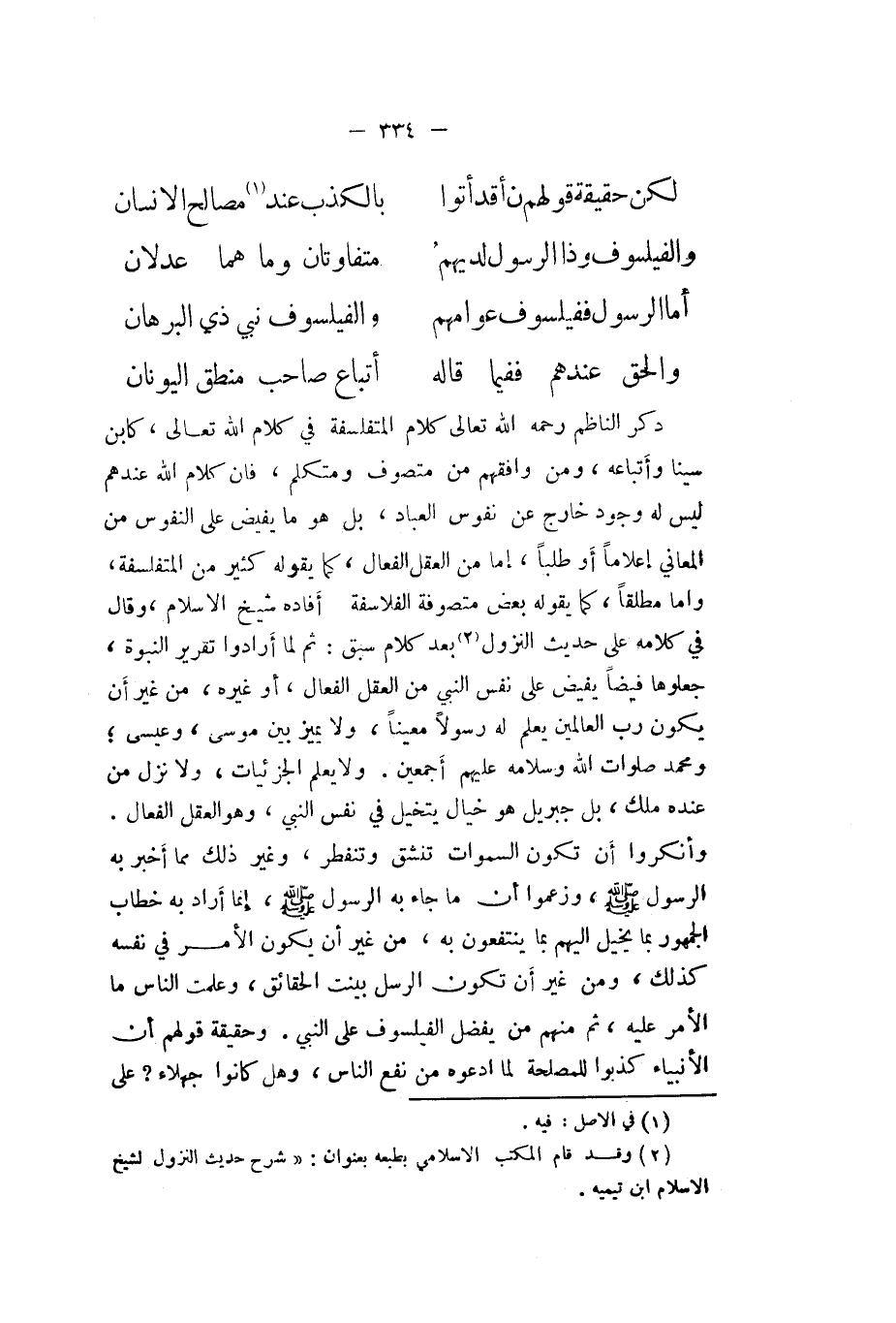 والفيلسوف نَبِي ذِي الْبُرْهَان ... وَالْحق عِنْدهم فَفِيمَا قَالَه