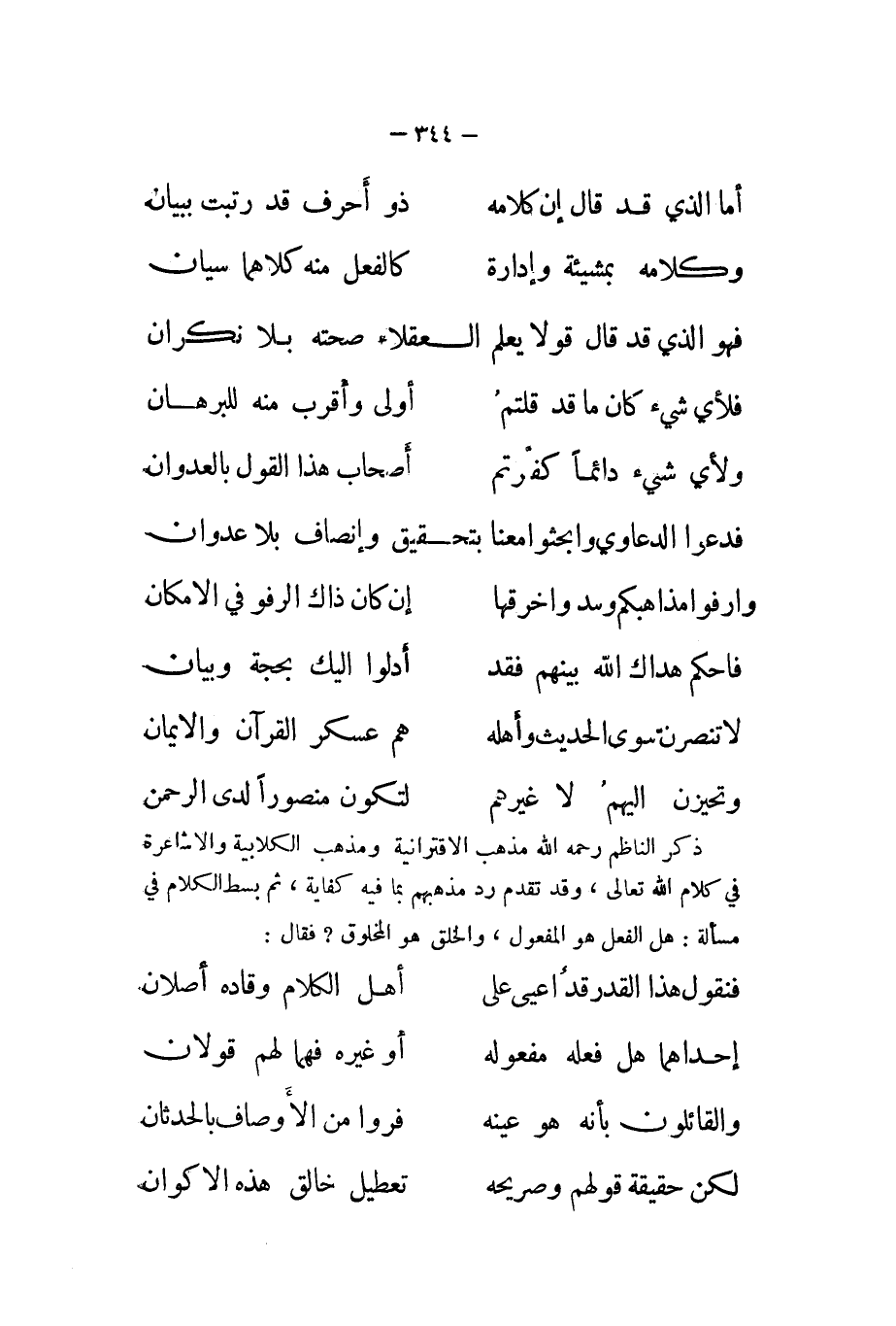 .. أما الَّذِي قد قَالَ إِن كَلَامه ... ذُو أحرف قد رتبت بِبَيَان