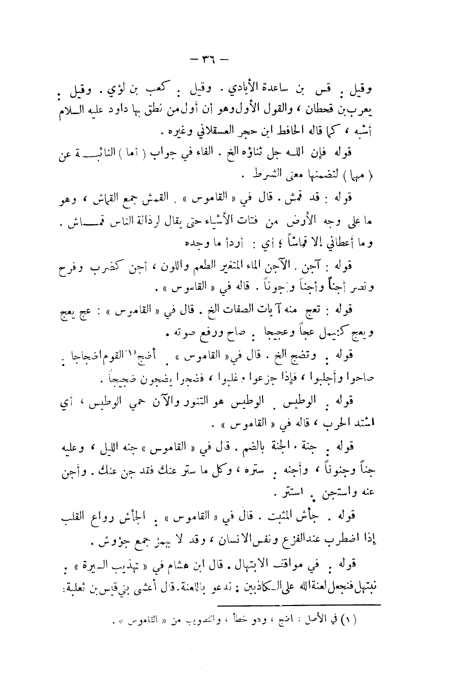 قَوْله آجن الآجن المَاء الْمُتَغَيّر الطّعْم والون آجن كضرب وَفَرح وَنصر أجنا وأجنا وجنونا قَالَه فِي (الْقَامُوس (قَوْله تعج مِنْهُ آيَات الصِّفَات الخ قَالَ فِي الْقَامُوس عج يعج ويعج كنميل عجا وعجيجا صَاح وَرفع صَوته