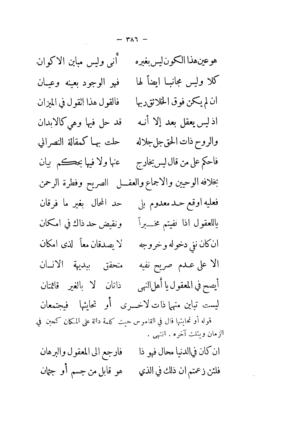 الا على عدم صَرِيح نَفْيه ... مُتَحَقق ببديهة الانسان