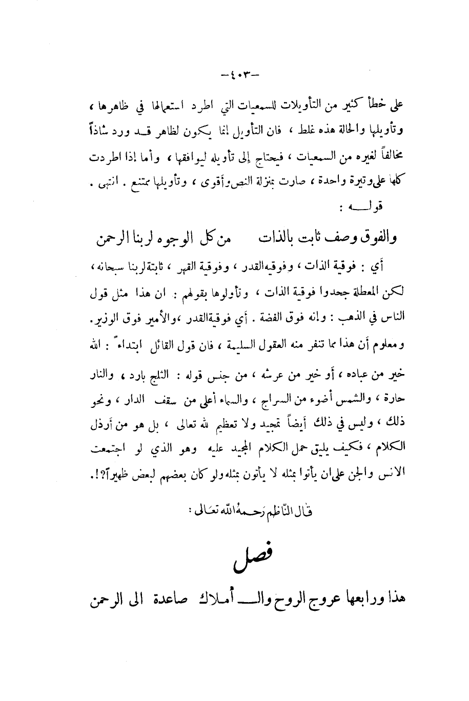 ... والفوق وصف ثَابت بِالذَّاتِ ... من كل الْوُجُوه لربنا الرَّحْمَن ...