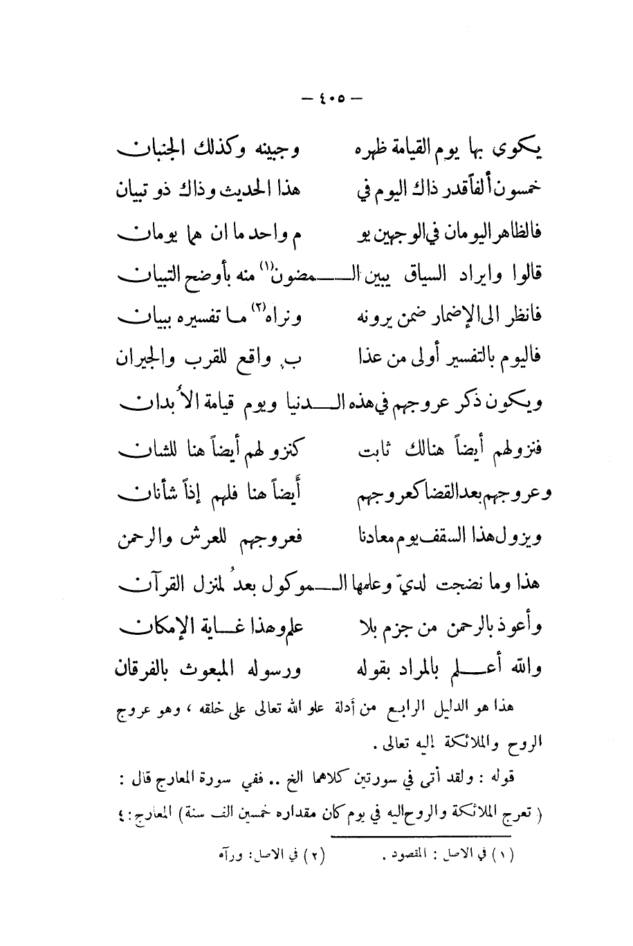 فعروجهم للعرش والرحمن ... هَذَا وَمَا نَضِجَتْ لدي وَعلمهَا الموكول بعد لمنزل الْقُرْآن