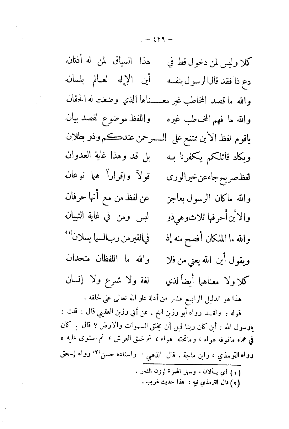 وَاللَّفْظ مَوْضُوع لقصد بَيَان ... ياقوم لفظ الأين مُمْتَنع على الرَّحْمَن عنْدكُمْ وَذُو بطلَان