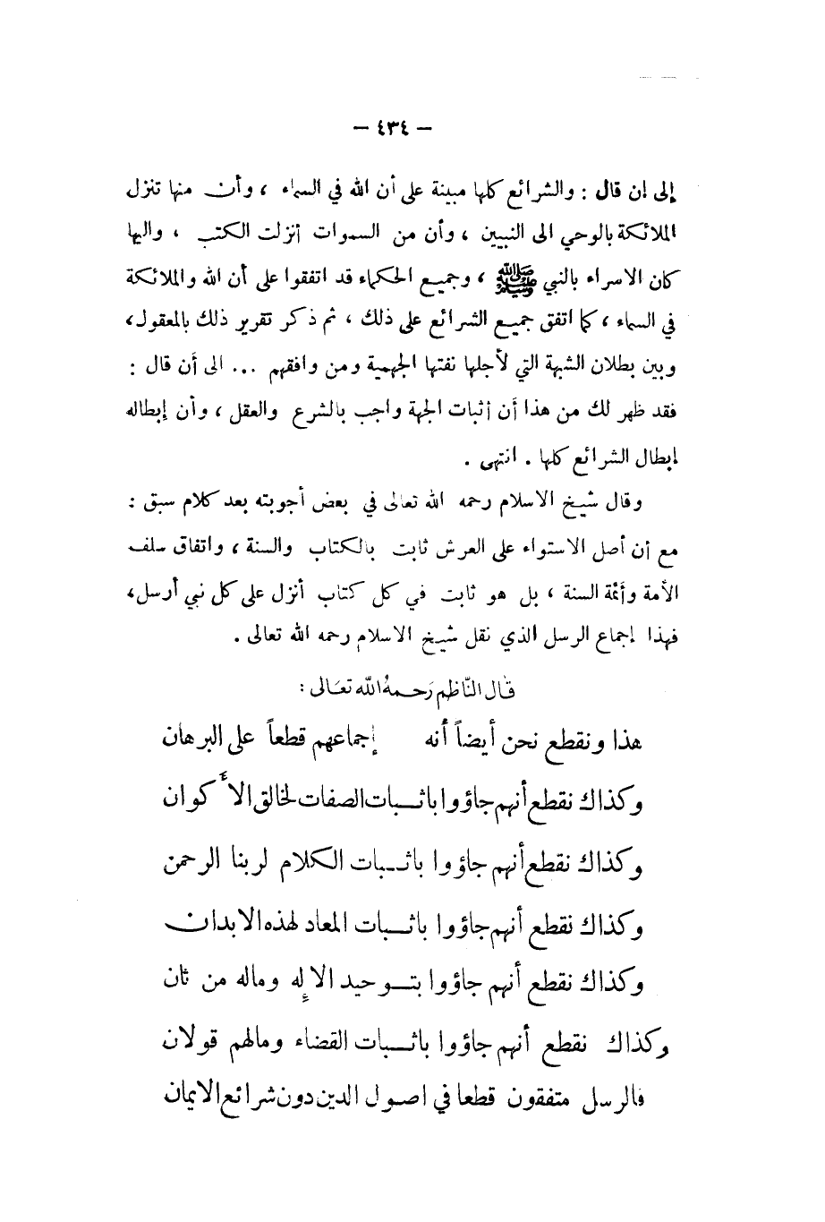 وكذاك نقطع أَنهم جاؤوا بِإِثْبَات الْقَضَاء وَمَا لَهُم قون ... فالرسل متفقون قطعا فِي أصُول الدّين دون شرائع الْإِيمَان ...