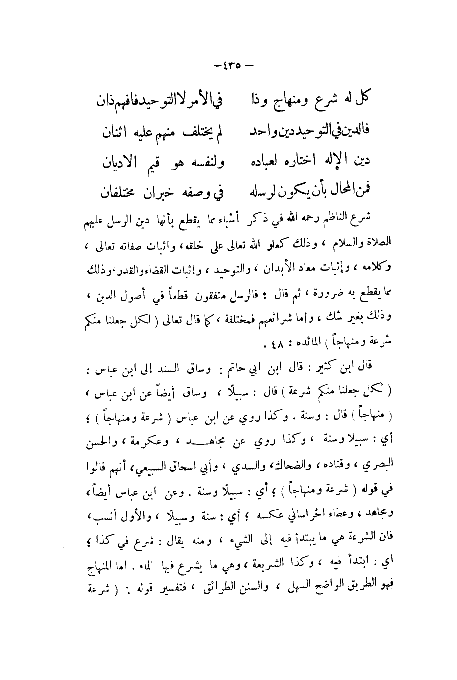 كل لَهُ شرع ومنهاج وَذَا ... فِي الْأَمر لَا التَّوْحِيد فَافْهَم ذان