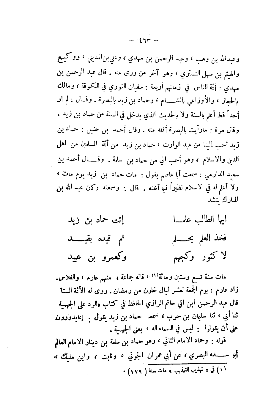 إئت حَمَّاد بن زيد ... فَخذ الْعلم بحلم