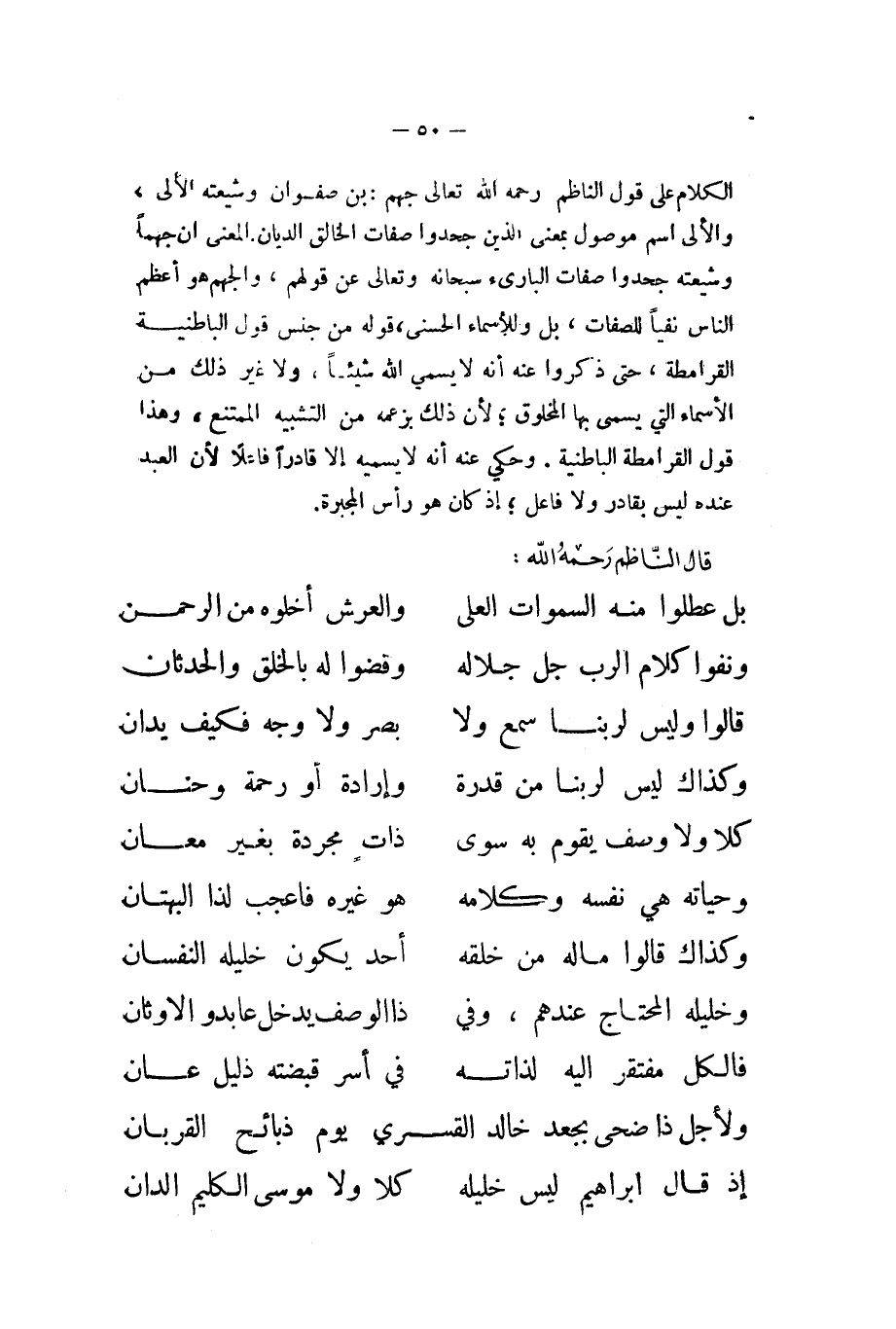 ... بل عطلوا مِنْهُ السَّمَوَات العلى ... وَالْعرش أخلوه من الرَّحْمَن