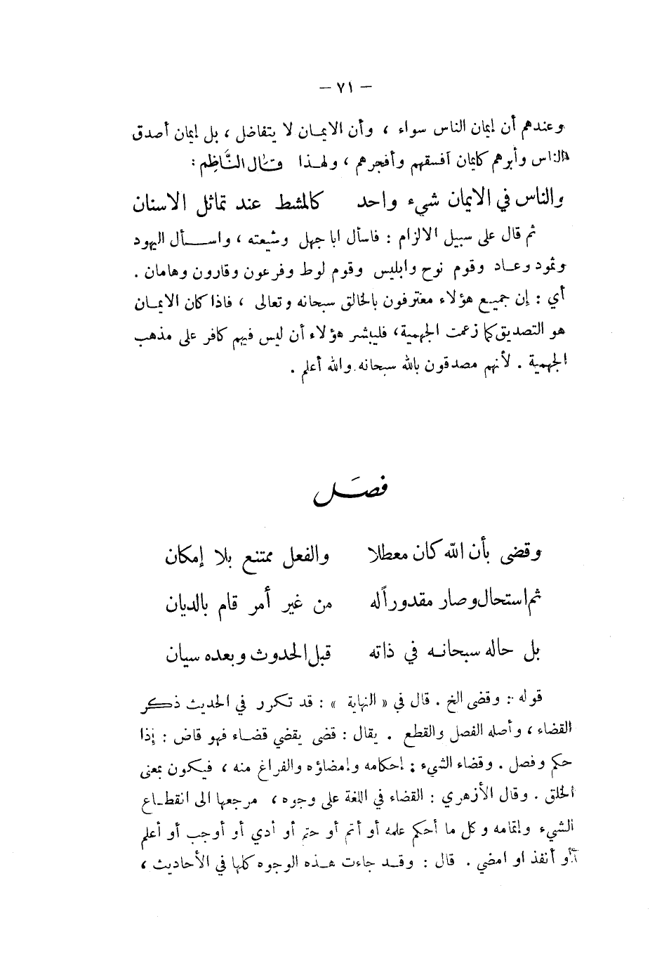 فصل ... وَقضى بِأَن الله كَانَ معطلا