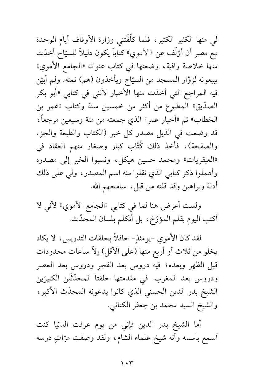 ولست أعرض هنا لما في كتابي «الجامع الأموي» لأني لا أكتب اليوم بقلم المؤرّخ، بل أتكلم بلسان المحدّث.