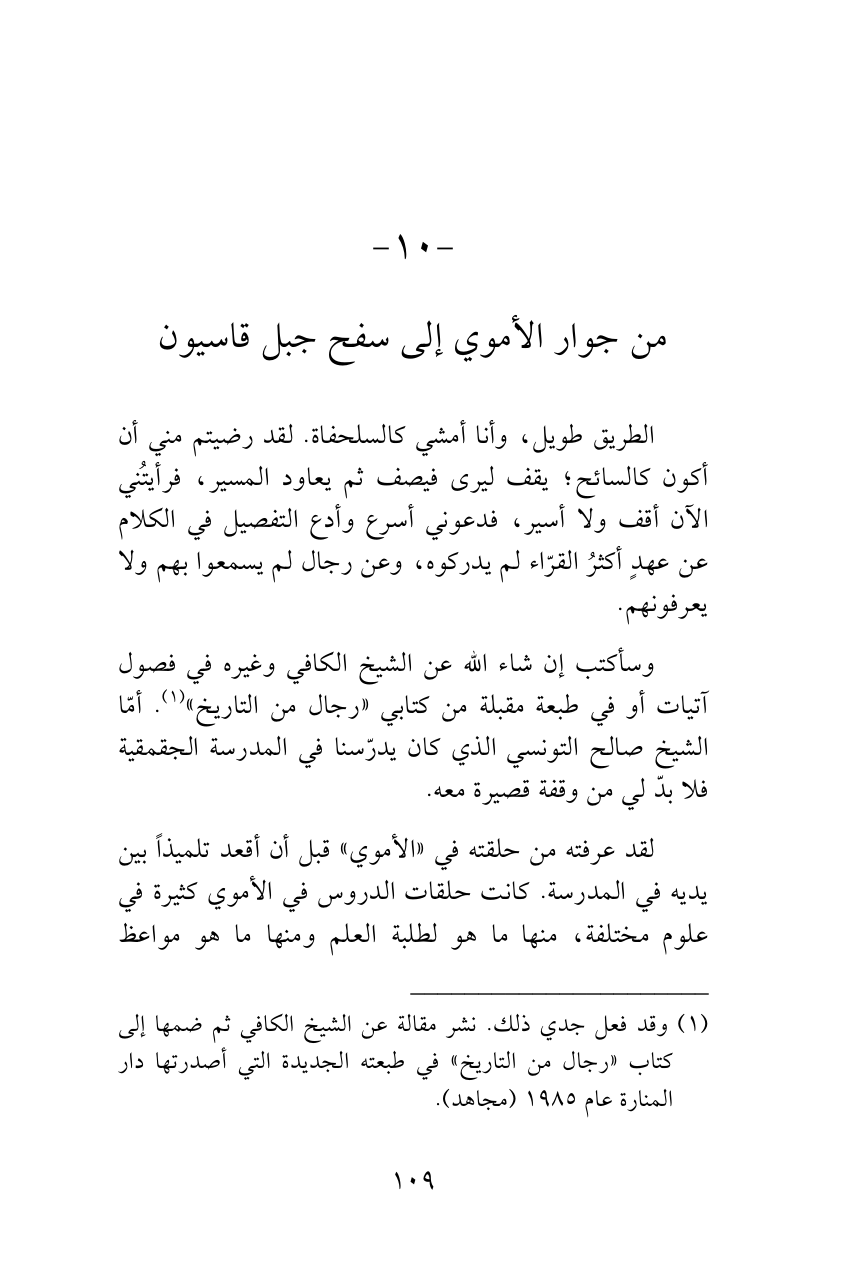 (¬1) وقد فعل جدي ذلك. نشر مقالة عن الشيخ الكافي ثم ضمها إلى كتاب «رجال من التاريخ» في طبعته الجديدة التي أصدرتها دار المنارة عام 1985 (مجاهد).