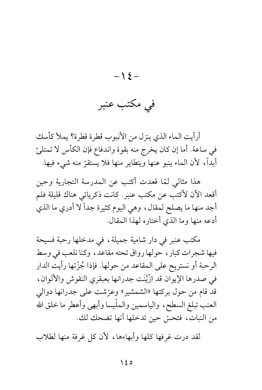 هذا مثالي لمّا قعدت أكتب عن المدرسة التجارية وحين أقعد الآن لأكتب عن مكتب عنبر. كانت ذكرياتي هناك قليلة فلم أجد منها ما يصلح لمقال، وهي اليوم كثيرة جداً لا أدري ما الذي أدعه منها وما الذي أختاره لهذا المقال.