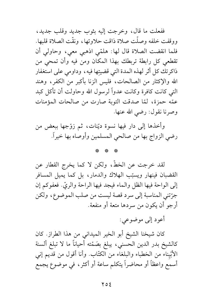 لقد خرجت عن الخطّ، ولكن لا كما يخرج القطار عن القضبان فينهار ويسبّب الهلاك والدمار، بل كما يميل المسافر إلى الواحة فيها الظل والماء فيجد فيها الراحة والريّ. فعفوكم إن جرّتني المناسبة إلى سرد قصة ليست من صلب الموضوع، ولكن أرجو أن يكون من سردها متعة أو منفعة.