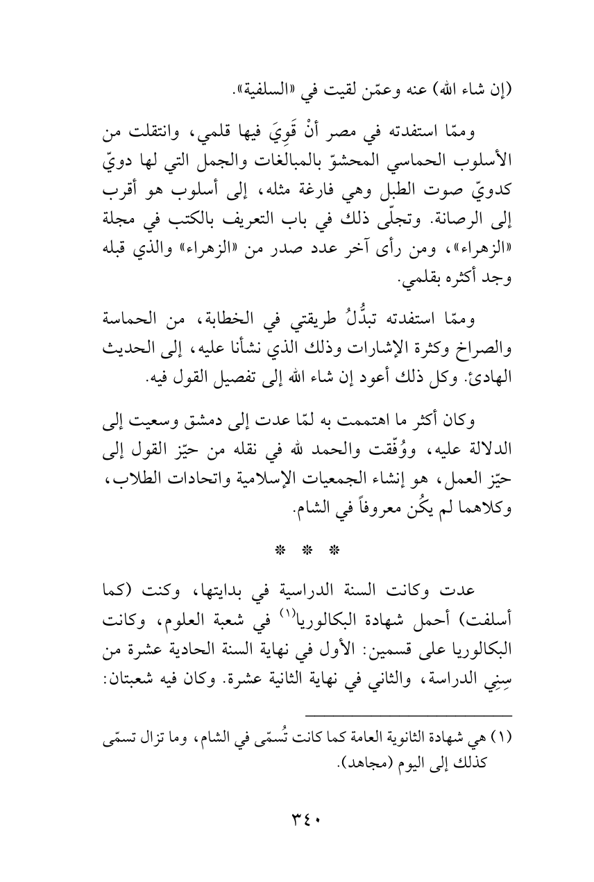(¬1) هي شهادة الثانوية العامة كما كانت تُسمّى في الشام، وما تزال تسمّى كذلك إلى اليوم (مجاهد).