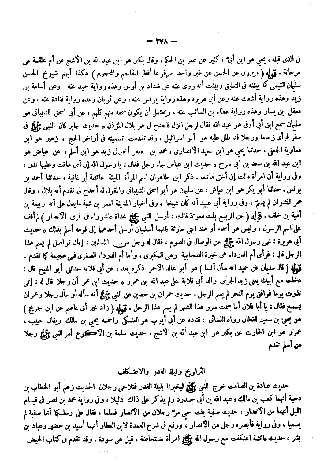 فِي الَّذِي قبله يحيى هُوَ بن أبي كثير عَن عمر بن الحكم وَقَالَ بكير هُوَ بن عبد الله بن الْأَشَج عَن أم عَلْقَمَة هِيَ مرْجَانَة قَوْلُهُ وَيُرْوَى عَنِ الْحَسَنِ عَنْ غَيْرِ وَاحِدٍ مَرْفُوعا أفطر الحاجم والمحجوم هَكَذَا أبهم شُيُوخ الْحسن سُلَيْمَان التَّيْمِيّ كَمَا بَينته فِي التَّعْلِيق وبينت أَنه روى عَنهُ عَن شَدَّاد بن أَوْس وَهَذِه رِوَايَة حميد عَنهُ وَعَن أُسَامَة بن زيد وَهَذِه رِوَايَة أَشْعَث عَنهُ وَعَن أبي هُرَيْرَة وَهَذِه رِوَايَة يُونُس عَنهُ وَعَن ثَوْبَان وَهَذِه رِوَايَة قَتَادَة عَنهُ وَعَن معقل بن يسَار وَهَذِه رِوَايَة عَطاء بن السَّائِب عَنهُ وَيحْتَمل أَن يكون سَمعه مِنْهُم كلهم عَن أبي إِسْحَاق الشَّيْبَانِيّ هُوَ سُلَيْمَان سمع بن أبي أوفى هُوَ عبد الله فَقَالَ لرجل انْزِلْ فأجدح لي هُوَ بِلَال الْمُؤَذّن حَدِيثِ جَابِرٍ كَانَ النَّبِيُّ صَلَّى اللَّهُ عَلَيْهِ وَسَلَّمَ فِي سَفَرٍ فَرَأى زحاما ورجلا قد ظلل عَلَيْهِ هُوَ أَبُو إِسْرَائِيل وَقد تقدّمت تَسْمِيَته فِي أَوَاخِر الْحَج زُهَيْر هُوَ بن مُعَاوِيَة الْجعْفِيّ حَدثنَا يحيى هُوَ بن سعيد الْأنْصَارِيّ مُحَمَّد بن جَعْفَر أَخْبرنِي زيد هُوَ بن أسلم عَن عِيَاض هُوَ بن عَبْدُ اللَّهِ بْنُ سَعْدِ بْنِ أَبِي سَرْحٍ حَدِيث بن عَبَّاسٍ جَاءَ رَجُلٌ فَقَالَ يَا رَسُولَ اللَّهِ إِنَّ أُمِّي مَاتَتْ وَعَلَيْهَا نذر وَفِي رِوَايَة أَن امْرَأَة قَالَت إِن أُخْتِي مَاتَت ذكر بن طَاهِر أَن اسْم الْمَرْأَة الْميتَة عَائِشَة أَو غانية حَدثنَا أَحْمد بن يُونُس حَدثنَا أَبُو بكر هُوَ بن عَيَّاشٍ عَنْ سُلَيْمَانَ هُوَ أَبُو إِسْحَاقَ الشَّيْبَانِيُّ وَالْمقول لَهُ أجدح لي تقدم أَنه بِلَال وَقَالَ عمر لنشوان لم يسم وَفِي رِوَايَة أبي عبيد أَنه كَانَ شَيخا وَفِي أَخْبَار الْمَدِينَة لعمر بن شبة مَا يدل على أَنه ربيعَة بن أُميَّة بن خلف قَوْله عَن الرّبيع بنت معوذ قَالَت أَرْسَلَ النَّبِيُّ صَلَّى اللَّهُ عَلَيْهِ وَسَلَّمَ غَدَاةَ عَاشُورَاء فِي قرى الْأَنْصَار لم أَقف على اسْم الرَّسُول وَلَيْسَ هُوَ أَسمَاء أَو هِنْد ابْني حَارِثَة فَإِنَّهُمَا أسلميان أرسل أَحدهمَا إِلَى قومه أسلم بذلك حَدِيثُ أَبِي هُرَيْرَةَ نَهَى رَسُولُ اللَّهِ صَلَّى اللَّهُ عَلَيْهِ وَسَلَّمَ عَنْ الْوِصَال فِي الصَّوْم فَقَالَ لَهُ رجل من الْمُسلمين إِنَّك تواصل لم يسم هَذَا الرجل قَالَ فَرَأى أم الدَّرْدَاء هِيَ خيرة الصحابية وَهِي الْكُبْرَى وَأما أم الدَّرْدَاء الصُّغْرَى فَهِيَ هجيمة كَمَا تقدم قَوْله قَالَ سُلَيْمَان عَن حميد أَنه سَأَلَ أنسا هُوَ أَبُو خَالِد الْأَحْمَر ذكره بعد عَن أبي قلَابَة حَدثنِي أَبُو الْمليح قَالَ دخلت مَعَ أَبِيك يَعْنِي زيد الْجرْمِي وَالِد أبي قلَابَة على عبد الله بن عَمْرو حَدِيث بن عمر أَن رجلا قَالَ لَهُ ... أَنِّي نذرت يَوْمًا فَوَافَقَ يَوْم النَّحْر لم يسم الرجل حَدِيث عمرَان بن حُصَيْن عَنِ النَّبِيِّ صَلَّى اللَّهُ عَلَيْهِ وَسَلَّمَ أَنَّهُ سَأَلَهُ أَو سَأَلَ رجلا وَعمْرَان يسمع فَقَالَ يَا أَبَا فلَان أما صمت سرر هَذَا الشَّهْر لم يسم هَذَا الرجل قَوْله زَاد غير أبي عَاصِم عَن بن جريج هُوَ يحيى بن سعيد الْقطَّان رَوَاهُ النَّسَائِيّ قَتَادَة عَن أبي أَيُّوب هُوَ الْعَتكِي واسْمه يحيى بن مَالك وَيُقَال حبيب عَمْرو هُوَ بن الْحَارِث عَن بكير هُوَ بن عبد الله بن الْأَشَج حَدِيث سَلمَة بن الْأَكْوَع أَمر النَّبِيُّ صَلَّى اللَّهُ عَلَيْهِ وَسَلَّمَ رَجُلًا مِنْ أسلم تقدم ... التَّرَاوِيح وَلَيْلَة الْقدر وَالِاعْتِكَاف حَدِيث عبَادَة بن الصَّامِت خرج النَّبِي صلى الله عَلَيْهِ وَسلم ليخبرنا بليلة الْقدر فتلاحى رجلَانِ الحَدِيث زعم أَبُو الْخطاب بن دحْيَة أَنَّهُمَا كَعْبُ بْنُ مَالِكٍ وَعَبْدُ اللَّهِ بْنُ أَبِي 