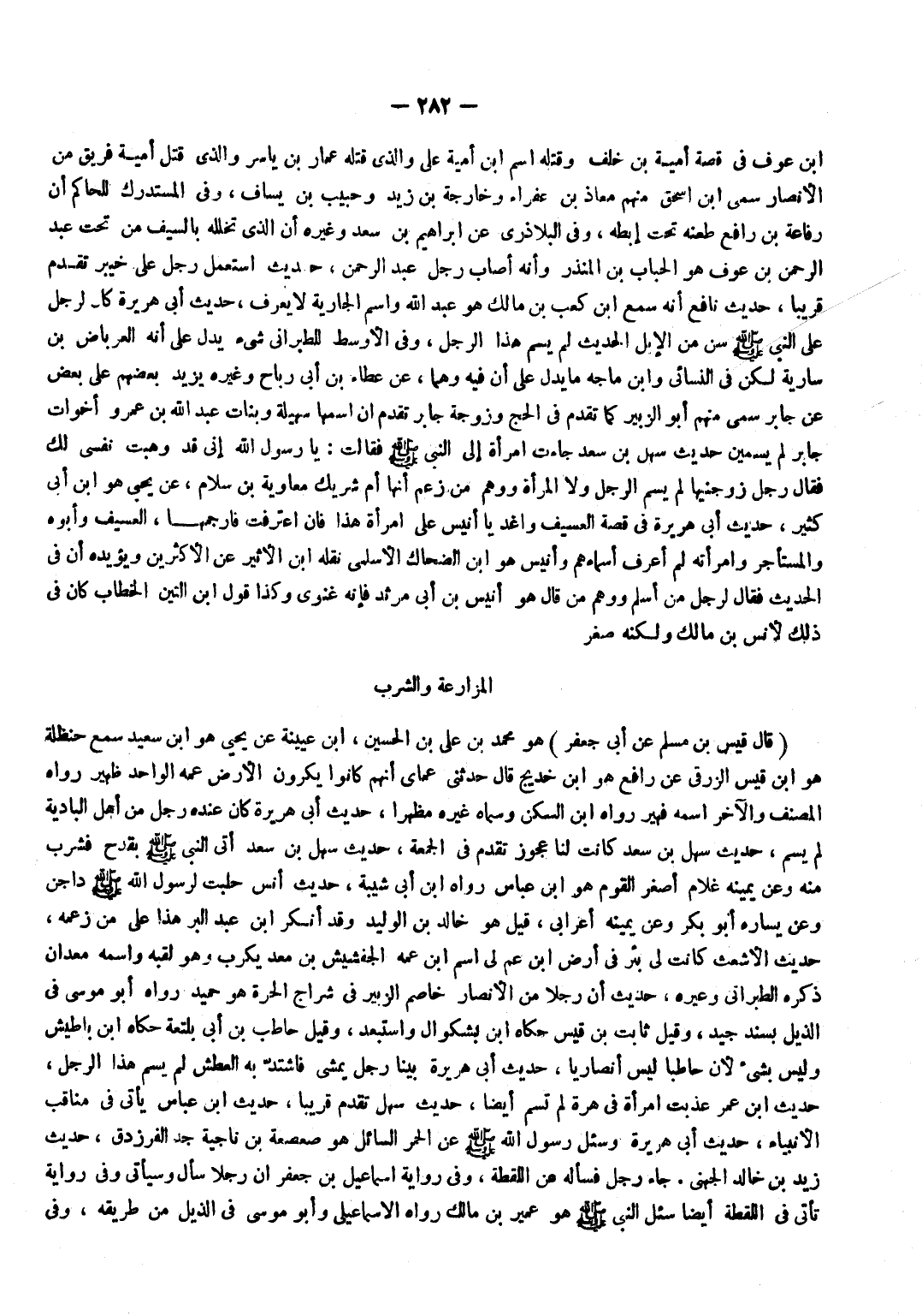 بن عَوْف فِي قصَّة أُميَّة بن خلف وَقَتله اسْم بن أُميَّة عَليّ وَالَّذِي قَتله عمار بن يَاسر وَالَّذِي قتل أُميَّة فريق من الْأَنْصَار سمي بن إِسْحَاق مِنْهُم معَاذ بن عفراء وخارجة بن زيد وحبِيب بن يسَاف وَفِي الْمُسْتَدْرك للْحَاكِم أَن رِفَاعَة بن رَافع طعنه تَحت إبطه وَفِي البلاذري عَن إِبْرَاهِيم بن سعد وَغَيره أَن الَّذِي تخلله بِالسَّيْفِ من تَحت عبد الرَّحْمَن بن عَوْف هُوَ الْحباب بن الْمُنْذر وَأَنه أصَاب رجل عبد الرَّحْمَن حَدِيث اسْتعْمل رجل على خَيْبَر تقدم قَرِيبا حَدِيث نَافِع أَنه سمع بن كَعْب بن مَالك هُوَ عبد الله وَاسم الْجَارِيَة لَا يعرف حَدِيثَ أَبِي هُرَيْرَةَ كَانَ لِرَجُلٍ عَلَى النَّبِيِّ صَلَّى اللَّهُ عَلَيْهِ وَسَلَّمَ سِنٌّ مِنَ الْإِبِلِ الحَدِيث لم يسم هَذَا الرجل وَفِي الْأَوْسَط للطبراني شَيْء يدل على أَنه الْعِرْبَاض بن سَارِيَة لَكِن فِي النَّسَائِيّ وبن ماجة مَا يدل على أَن فِيهِ وهما عَنْ عَطَاءِ بْنِ أَبِي رَبَاحٍ وَغَيْرِهِ يَزِيدُ بَعضهم على بعض عَن جَابر سمي مِنْهُم أَبُو الزبير كَمَا تقدم فِي الْحَج وَزَوْجَة جَابر تقدم أَن اسْمهَا سهيلة وَبَنَات عبد الله بن عَمْرو أَخَوَات جَابر لم يسمين حَدِيث سهل بن سعد جَاءَتِ امْرَأَةٌ إِلَى النَّبِيِّ صَلَّى اللَّهُ عَلَيْهِ وَسَلَّمَ فَقَالَتْ يَا رَسُولَ الله ... أَنِّي قد وهبت نَفسِي لَك فَقَالَ رجل زوجنيها لم يسم الرجل وَلَا الْمَرْأَة وَوهم من زعم أَنَّهَا أم شريك مُعَاوِيَة بن سَلام عَن يحيى هُوَ بن أبي كثير حَدِيث أبي هُرَيْرَة فِي قصَّة العسيف واغد يَا أنيس على امْرَأَة هَذَا فَإِن اعْترفت فارجمها العسيف وَأَبوهُ وَالْمُسْتَأْجر وَامْرَأَته لم أعرف أَسْمَاءَهُم وأنيس هُوَ بن الضَّحَّاك الْأَسْلَمِيّ نَقله بن الْأَثِير عَن الْأَكْثَرين وَيُؤَيِّدهُ أَن فِي الحَدِيث فَقَالَ لرجل من أسلم وَوهم من قَالَ هُوَ أنيس بن أبي مرْثَد فَإِنَّهُ غنوي وَكَذَا قَول بن التِّين الْخطاب كَانَ فِي ذَلِك لأنس بن مَالك وَلكنه صغر ... الْمُزَارعَة وَالشرب قَالَ قيس بن مُسلم عَنْ أَبِي جَعْفَرٍ هُوَ مُحَمَّدُ بْنُ عَلِيِّ بْنِ الْحُسَيْنِ بن عُيَيْنَة عَن يحيى هُوَ بن سعيد سمع حَنْظَلَة هُوَ بن قيس الزرقي عَن رَافع هُوَ بن خديج قَالَ حَدثنِي عماي أَنهم كَانُوا يكرون الأَرْض عَمه الْوَاحِد ظهير رَوَاهُ المُصَنّف وَالْآخر اسْمه فهير رَوَاهُ بن السكن وَسَماهُ غَيره مظْهرا حَدِيث أبي هُرَيْرَة كَانَ عِنْده رجل من أهل الْبَادِيَة لم يسم حَدِيث سهل بن سعد كَانَت لنا عَجُوز تقدم فِي الْجُمُعَة حَدِيث سهل بْنَ سَعْدٍ أَتَى النَّبِيَّ صَلَّى اللَّهُ عَلَيْهِ وَسلم بقدح فَشرب مِنْهُ وَعَن يَمِينه غُلَام أَصْغَر الْقَوْم هُوَ بن عَبَّاس رَوَاهُ بن أبي شيبَة حَدِيث أنس حلبت لرَسُول الله صلى الله عَلَيْهِ وَسلم دَاجِن وَعَن يسَاره أَبُو بكر وَعَن يَمِينه أَعْرَابِي قيل هُوَ خَالِد بن الْوَلِيد وَقد أنكر بن عبد الْبر هَذَا على من زَعمه حَدِيثَ الْأَشْعَثِ كَانَتْ لِي بِئْرٌ فِي أَرْضِ بن عَم لي اسْم بن عَمه الجفشيش بن معد يكرب وَهُوَ لقبه واسْمه معدان ذكره الطَّبَرَانِيّ وَغَيره حَدِيث أَن رجلا من الْأَنْصَار خَاصم الزبير فِي شراج الْحرَّة هُوَ حميد رَوَاهُ أَبُو مُوسَى فِي الذيل بِسَنَد جيد وَقيل ثَابت بن قيس حَكَاهُ بن بشكوال واستبعد وَقيل حَاطِب بن أبي بلتعة حَكَاهُ بن بأطيش وَلَيْسَ بِشَيْء لِأَن حَاطِبًا لَيْسَ أَنْصَارِيًّا حَدِيث أبي هُرَيْرَة بَينا رجل يمشي فَاشْتَدَّ بِهِ الْعَطش لم يسم هَذَا الرجل حَدِيث بن عمر عذبت امْرَأَة فِي هرة لم تسم أَيْضا حَدِيث سهل تقدم قَرِيبا حَدِيث بن عَبَّاس يَأْتِي فِي مَنَاقِب الْأَنْبِيَاء حَدِيث أبي هُرَيْرَة وَسُئِلَ رَسُولُ اللَّهِ صَلَّى اللَّهُ عَلَيْهِ وَسَلَّمَ عَنْ الْحمر السَّائِل هُوَ صعصعة بن نَاجِية