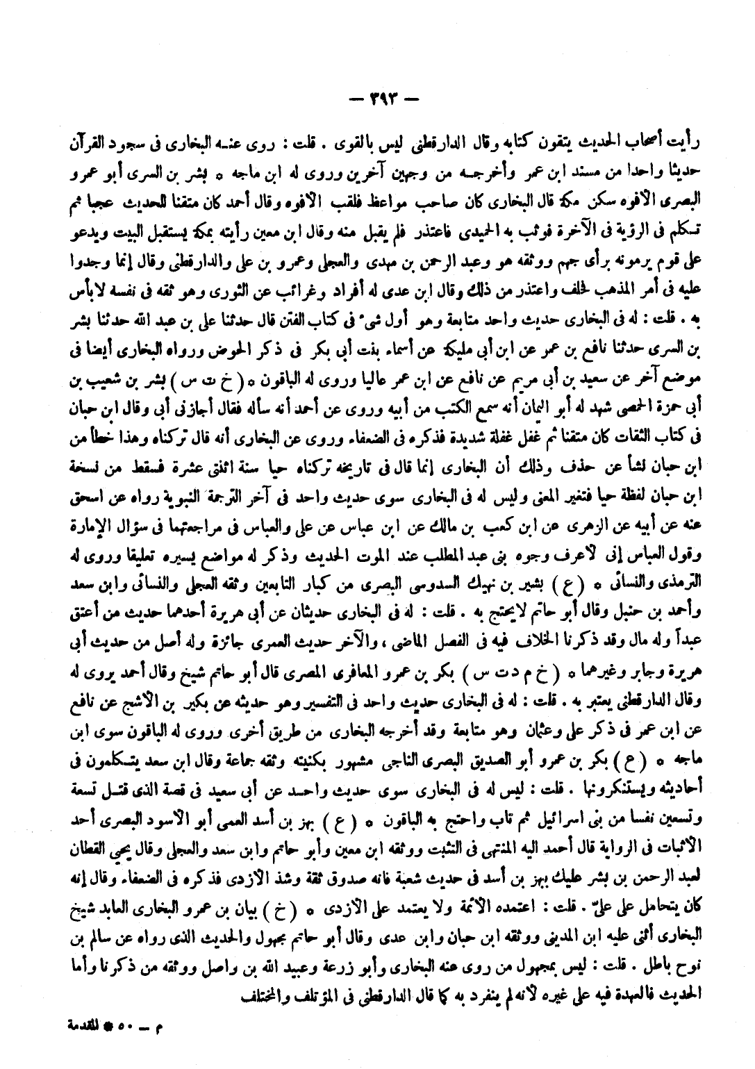 الشّعبِيّ حَدِيث سَلمَة أَتَى عين من الْمُشْركين لم يسم حَدِيث بن عَبَّاس فأوصى عِنْد مَوته بِثَلَاث فَذكر اثْنَتَيْنِ ونسيت الثَّالِثَة الْقَائِل ونسيت الثَّالِثَة هُوَ بن عُيَيْنَة بَينه الْإِسْمَاعِيلِيّ فِي رِوَايَته هُنَا وَقد بَينه البُخَارِيّ بعد فِي الْجِزْيَة وَفِي مُسْند الْحميدِي أَنه سُلَيْمَان شيخ بن عُيَيْنَة وَالثَّالِثَة وَقع فِي صَحِيح بن حبَان مَا يُشِير إِلَى أَنَّهَا الْوَصِيَّة بالأرحام قَول عمر إيَّايَ وَنعم بن عَوْف وبن عَفَّان هما عَبْدِ الرَّحْمَنِ بْنِ عَوْفٍ وَعُثْمَانَ بْنِ عَفَّانَ وَهُوَ وَاضح حَدِيث بن عَبَّاس فِي الرجل الَّذِي قَالَ اكتتبت فِي غَزْوَة وحجت امْرَأَته تقدم أَنَّهُمَا لم يسميا حَدِيث أبي هُرَيْرَة فِي الرجل الَّذِي قَاتل قتالا شَدِيدا أَنه من أهل النَّار تقدم أَنه قزمان وَأَن الَّذِي قَالَ قتل يَا رَسُول الله هُوَ أكتم بن أبي الجون الْخُزَاعِيّ قَوْله وَقَالَ رَافع هُوَ بن خديج وَذكر حَدِيثه بعد أَبْوَاب من رِوَايَة عَبَايَة بن رِفَاعَة عَن جده رَافع وَفِيه فَأَهوى إِلَيْهِ رجل بِسَهْم لم يسم هَذَا الرجل وَقيل هُوَ رَافع الرَّاوِي وَالْقَائِل فَقَالَ جدي هُوَ عَبَايَة وَظَاهر السِّيَاق أَن الْقَائِل ذَلِك هُوَ رَافع وَلَيْسَ كَذَلِك وَقد تبين من رِوَايَة أُخْرَى مَا قُلْنَاهُ وَفِي حَدِيث بن عمر وأبق لَهُ عبد لم يسم حَدِيث رَسُول جرير تقدم أَن اسْمه حُصَيْن بن ربيعَة ويكنى أَبَا أَرْطَاة الأحمسي قَول أبي عبد الرَّحْمَن هُوَ السّلمِيّ لِابْنِ عَطِيَّة ... أَنِّي لأعْلم الَّذِي جرأ صَاحبك يَعْنِي عَليّ بن أبي طَالب وَقد تقدم اسْم الْمَرْأَة المبهمة فِيهِ قَرِيبا ... قرض الْخمس قَول عَليّ وَاعَدت صواغا تقدم أَنه لم يسم وَلَا الرجل الْأنْصَارِيّ صَاحب الْحُجْرَة حَدِيث مَالك بن أَوْس إِذا رَسُول عمر قيل هُوَ يرفا وَفِيه نظر لِأَن يرفا إِنَّمَا كَانَ حَاجِبه حَدِيث عَائِشَة دخل عبد الرَّحْمَن بسواك هُوَ بن أبي بكر وَكَانَ السِّوَاك جَرِيدَة رطبَة حَدِيث صَفِيَّة فِي الِاعْتِكَاف تقدم أَنه لم يسم الرّجلَانِ من الْأَنْصَار وَعم حَفْصَة من الرضَاعَة لم أعرف اسْمه قَوْله وَزَاد سُلَيْمَان هُوَ بن الْمُغيرَة عَن حميد هُوَ بن هِلَال حَدِيث الْمسور ثمَّ ذكر صهرا لَهُ من بني عبد شمس هُوَ أَبُو الْعَاصِ بن الرّبيع وَبنت عبد الله هِيَ جوَيْرِية بنت أبي جهل كَمَا تقدم حَدِيث جَابر فِي قصَّة الْأنْصَارِيّ الَّذِي أَرَادَ أَن يُسَمِّي ابْنه الْقَاسِم هُوَ أنس بن فضَالة فَسمى ابْنه مُحَمَّدًا رَوَاهُ بن مَنْدَه وَأما الحَدِيث الَّذِي فِيهِ سم ابْنك عبد الرَّحْمَن فَهُوَ لغير هَذَا حَدَّثَنَا عَبْدُ اللَّهِ بْنُ يَزِيدَ هُوَ الْمُقْرِئُ حَدثنَا سعيد هُوَ بن أبي أَيُّوب حَدثنِي أَبُو الْأَسْوَدِ هُوَ مُحَمَّدُ بْنُ عَبْدِ الرَّحْمَنِ بْنِ نَوْفَل يَتِيم عُرْوَة عَن بن أبي عَيَّاش هُوَ النُّعْمَان عَن خَوْلَة الْأَنْصَارِيَّة هِيَ بنت حَكِيم جرير هُوَ بن عبد الحميد عَن عبد الْملك هُوَ بن عُمَيْر حَدِيث أبي هُرَيْرَة غزا نَبِي من الْأَنْبِيَاء هُوَ يُوشَع بن نون رَوَاهُ الْحَاكِم فِي الْمُسْتَدْرك عَن كَعْب الْأَحْبَار وَالْمَدينَة الَّتِي فتحت هِيَ أريحاء وَهِي بَيت الْمُقَدّس وَالْمَكَان الَّذِي قسمت فِيهِ الْغَنِيمَة سمي باسم الَّذِي وجد عِنْده الْغلُول وَهُوَ عَاجز فَقيل للمكان غور عَاجز رَوَاهُ الطَّبَرَانِيّ حَدِيث أبي مُوسَى قَالَ أَعْرَابِي هُوَ لَاحق بن ضَمرَة كَمَا تقدم حَدِيث عبد الله بن الزبير لما وقف الزبير يَوْم الْجمل دَعَاني فَقُمْت إِلَى جنبه وَفِيه فأوصى بِثلث ثلثه لبني عبد الله بن الزبير هم خبيب وَعباد وهَاشِم وثابت وَبَاقِي بنيه ولدُوا بعد ذَلِك وَفِيه وَله يَعْنِي للزبير يَوْمئِذٍ تِسْعَة بَنَات الذُّكُورُ هُمْ عَبْدُ اللَّهِ وَعُرْوَةُ وَالْمُنْذِرُ أ