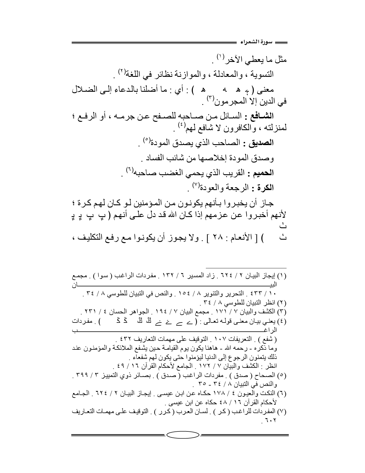 التسوية، والمعادلة، والموازنة نظائر في اللغة