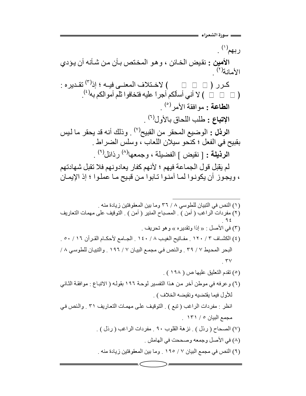 الأمين: نقيض الخائن، وهو المختص بأن من شأنه أن يؤدي.