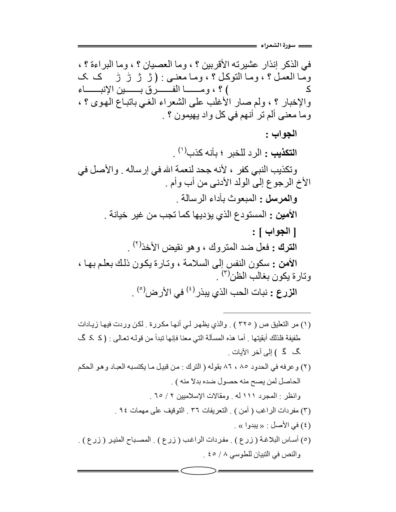 وما الفرق بين الإنباء والإخبار؟ ، ولم صار الأغلب على الشعراء الغي باتباع الهوى؟ ، وما معنى: ألم تر أنهم في كل واد يهيمون؟ .