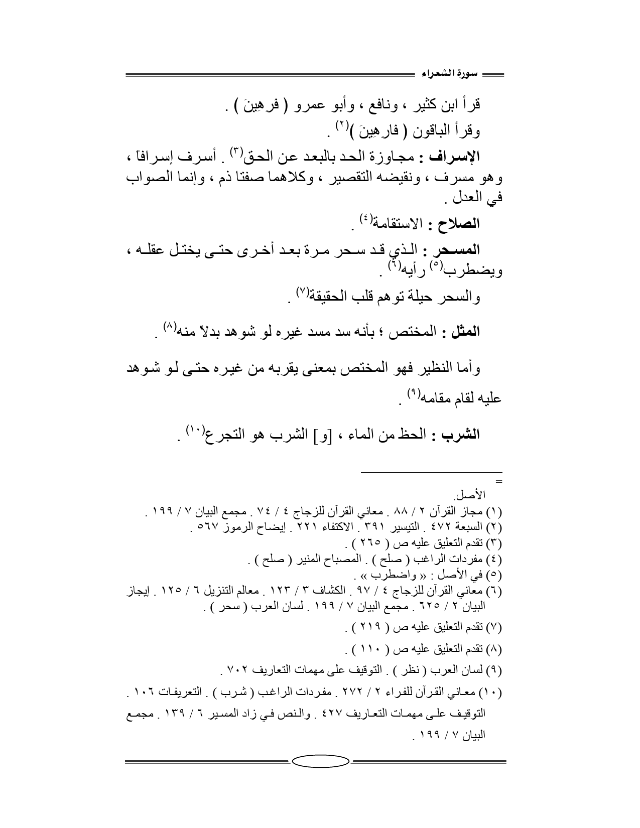 أسرف إسرافاً، وهو مسرف، ونقيضه التقصير، وكلاهما صفتا ذم، وإنما الصواب في العدل..