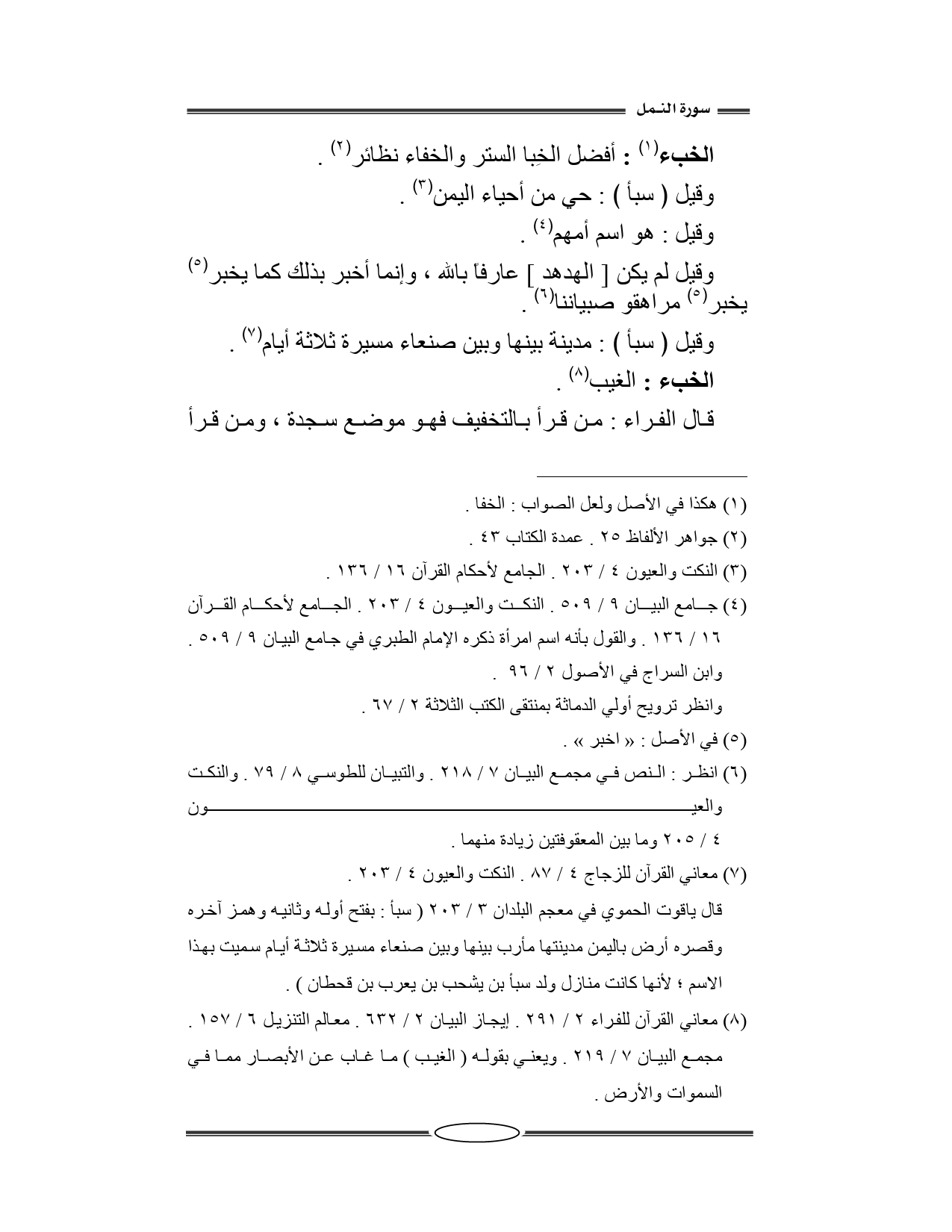 الخبء: أفضل الخِبا الستر والخفاء نظائر.