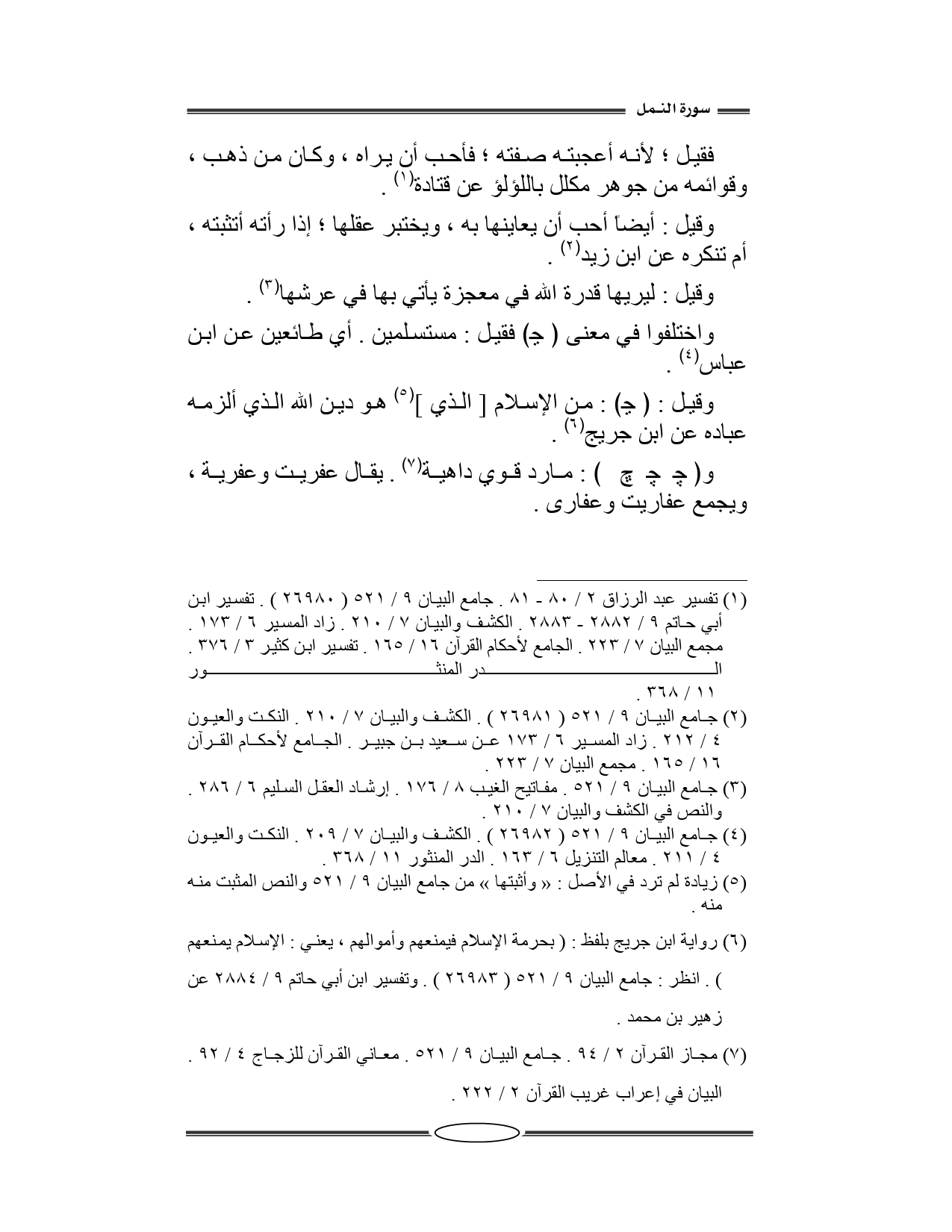 وقوائمه من جوهر مكلل باللؤلؤ عن قتادة.