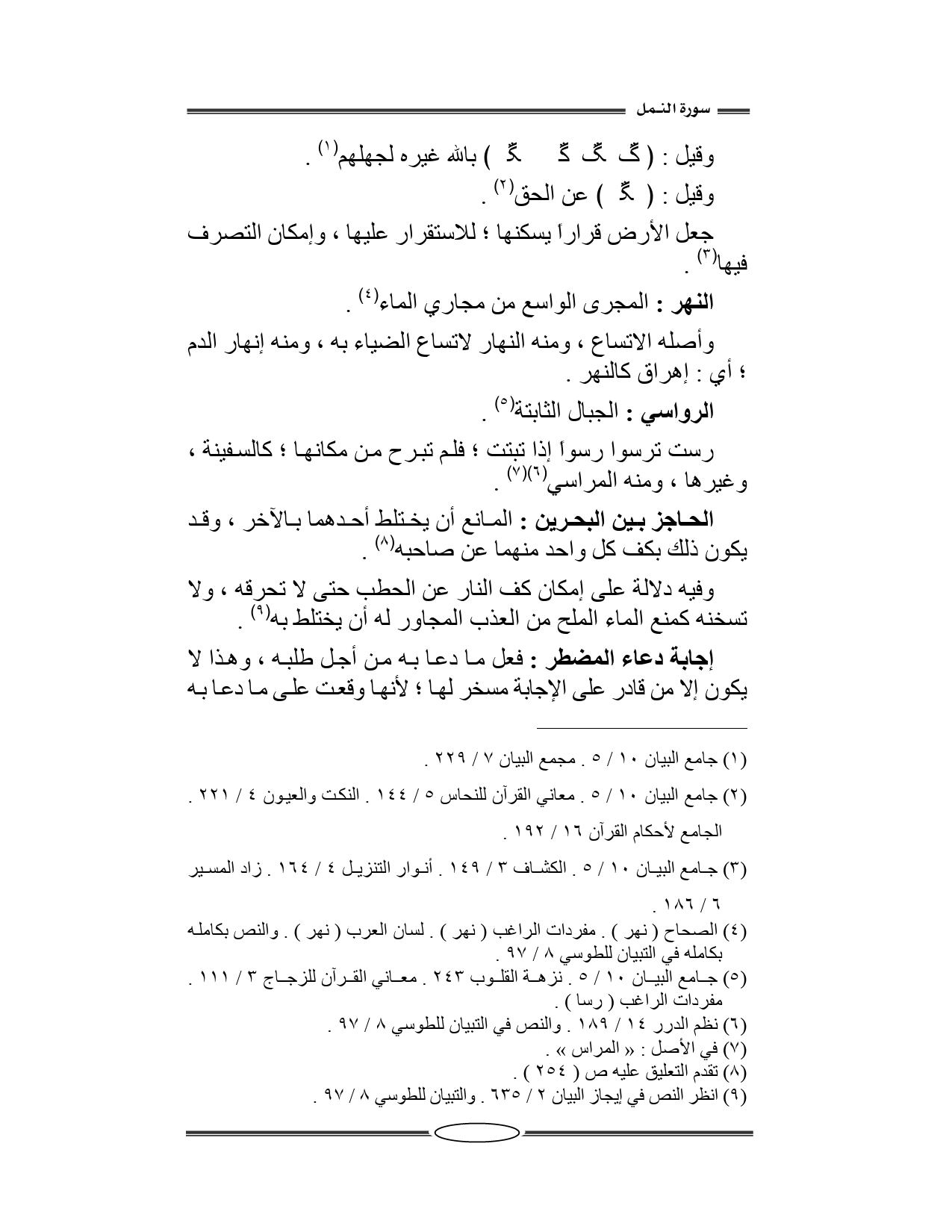 الحاجز بين البحرين: المانع أن يختلط أحدهما بالآخر، وقد يكون ذلك بكف كل واحد منهما عن صاحبه.
