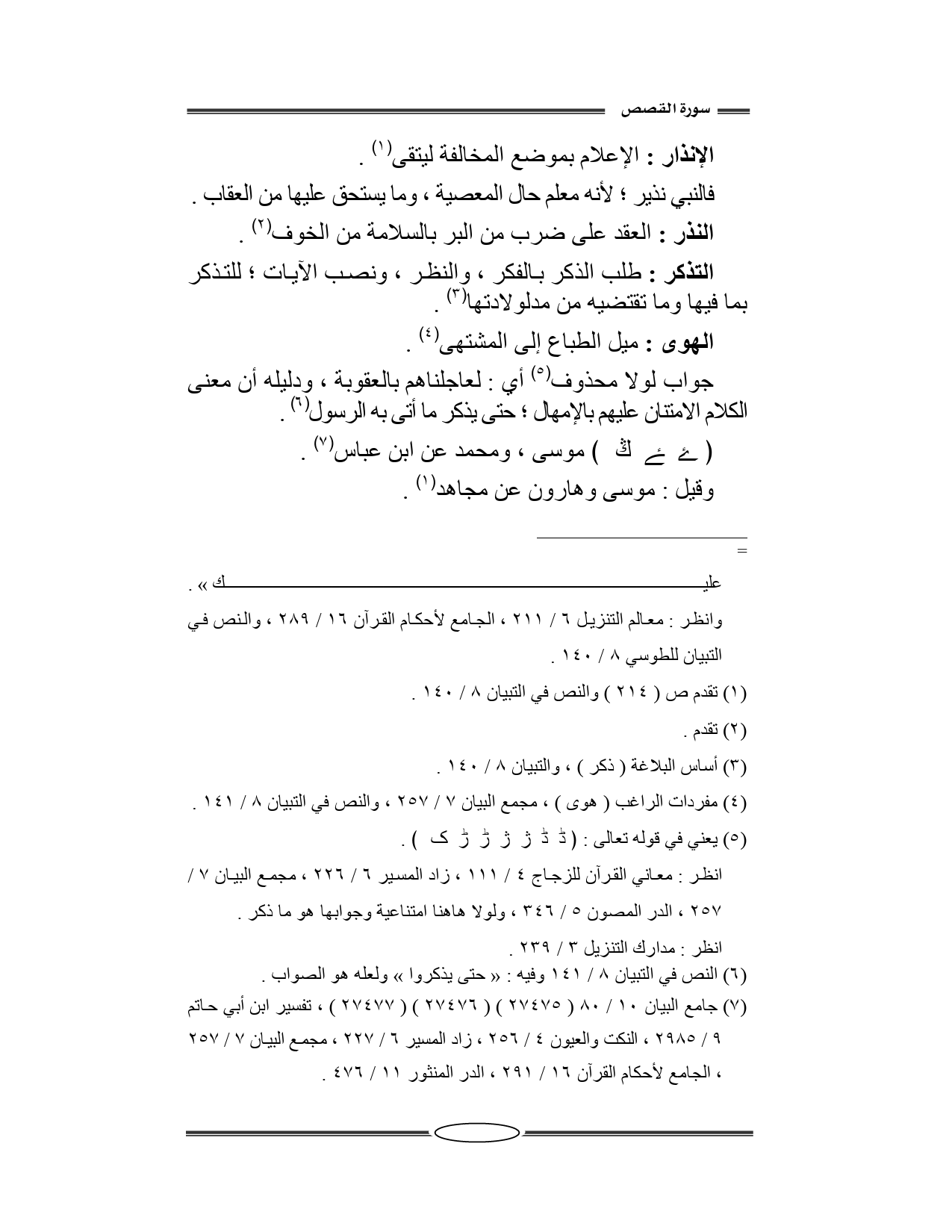 الإنذار: الإعلام بموضع المخالفة ليتقى.