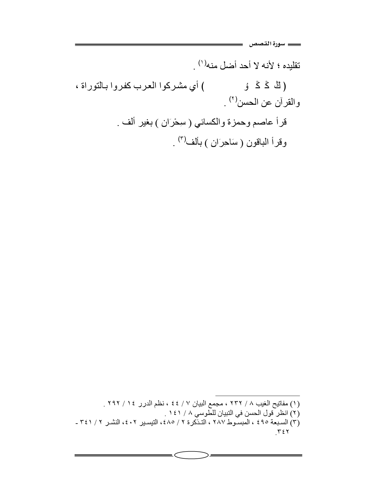 قرأ عاصم وحمزة والكسائي (سِحْرَانِ) بغير ألف.