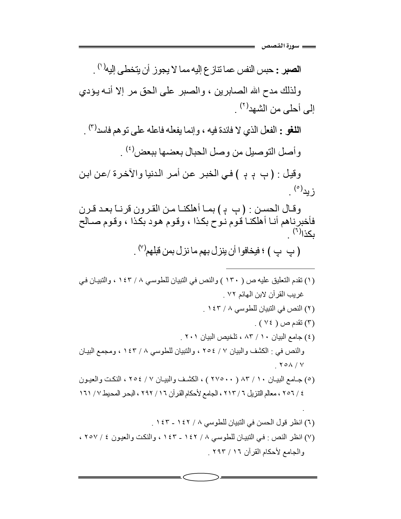 الصبر: حبس النفس عما تنازع إليه مما لا يجوز أن يتخطى إليه