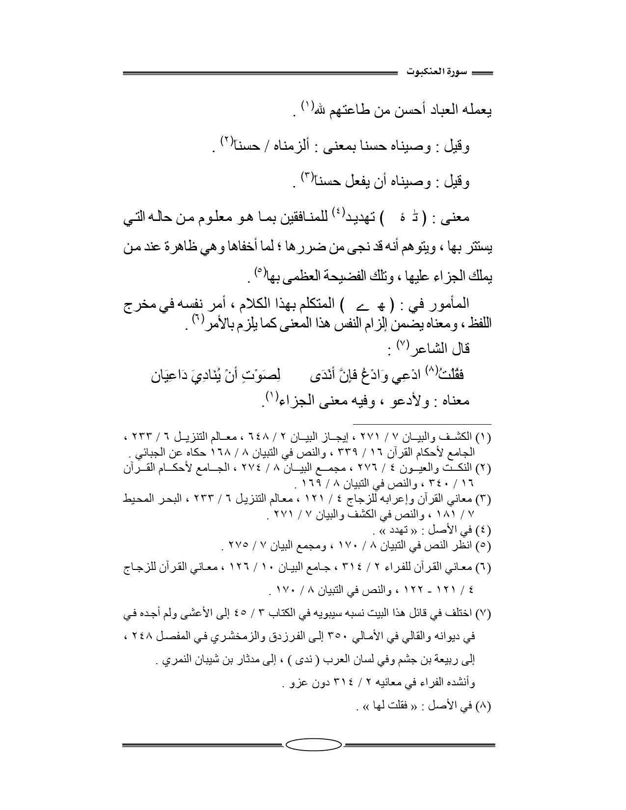 المتكلم بهذا الكلام، أمر نفسه في مخرج اللفظ، ومعناه يضمن إلزام النفس هذا المعنى كما يلزم بالأمر