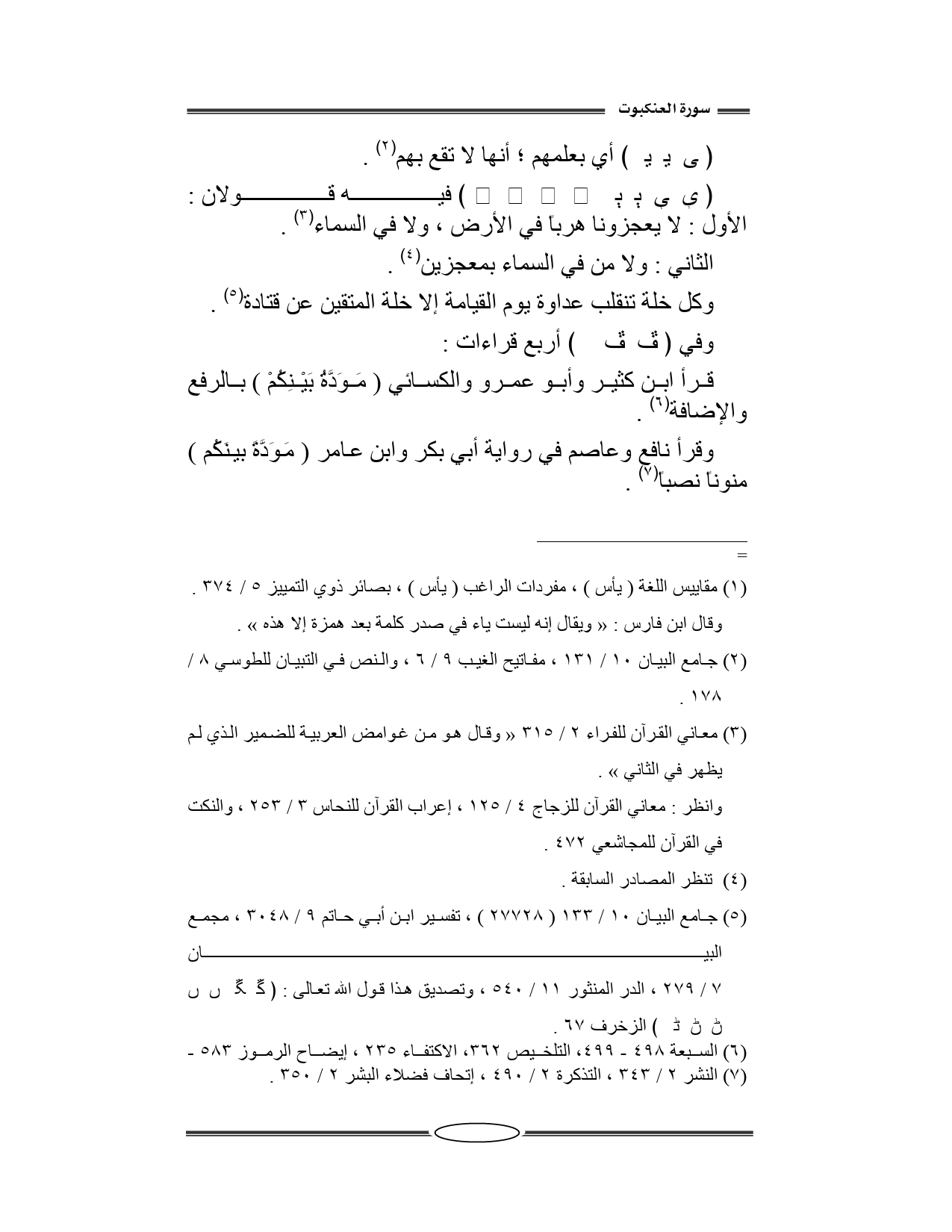 قرأ ابن كثير وأبو عمرو والكسائي (مَوَدَّةُ بَيْنِكُمْ) بالرفع والإضافة.
