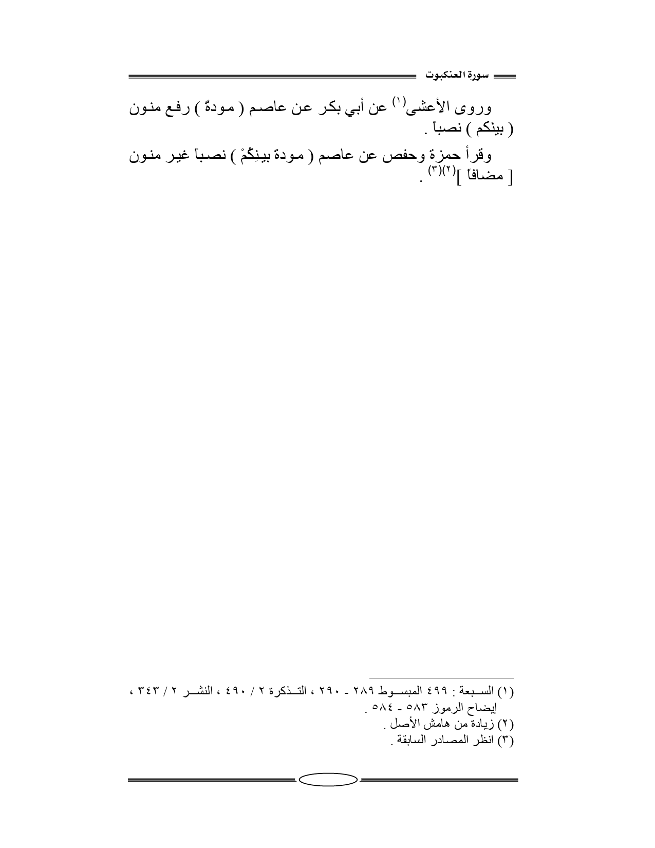 وروى الأعشى عن أبي بكر عن عاصم (مودةٌ) رفع منون (بينَكم) نصباً.