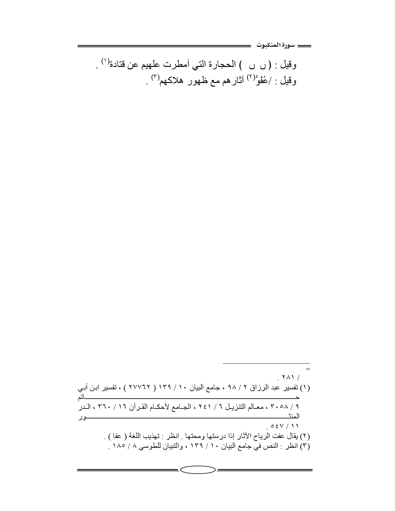 الحجارة التي أمطرت علهيم. عن قتادة.