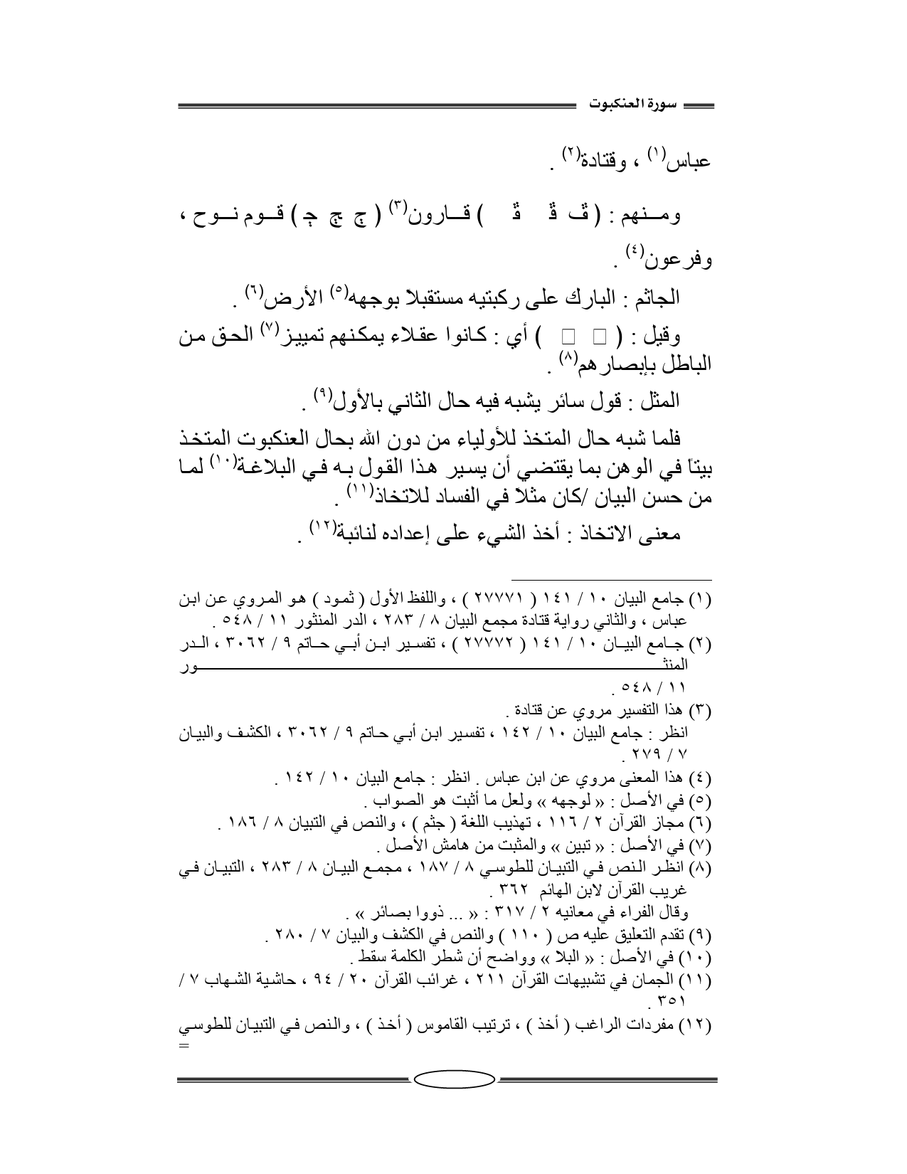 بيتاً في الوهن بما يقتضي أن يسير هذا القول به في البلاغة لما من حسن البيان كان مثلاً في الفساد للاتخاذ.